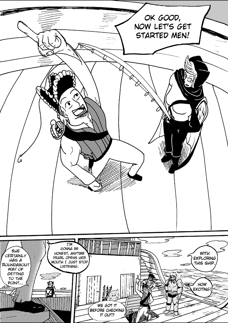 William, Duros, Ragnar, and Verona took to the seas as pirates in search of their own goals. After a shipwreck wipes out most of their crew, they meet a mysterious girl, Pearl. This makeshift group, brought together by misfortune, set out to sea seeking answers to both their individual quests and the meaning of a crew.