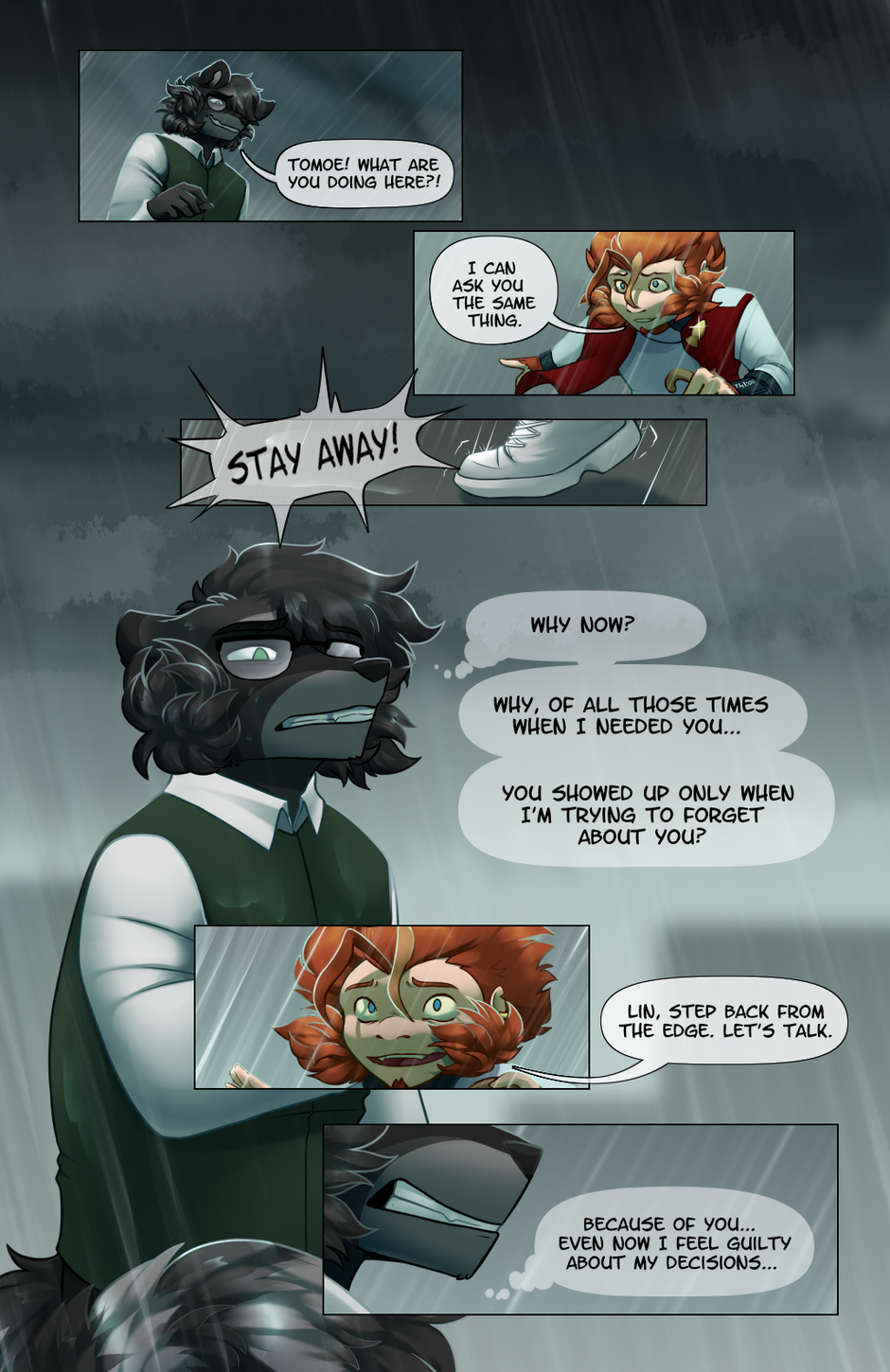 damn, I didn't even post here about the hiatus. The last couple of months have been very difficult. Now I hope to finish publishing this comics without interruption. Also now whole roof scene (pg 12-19) will be labeled "mature content"