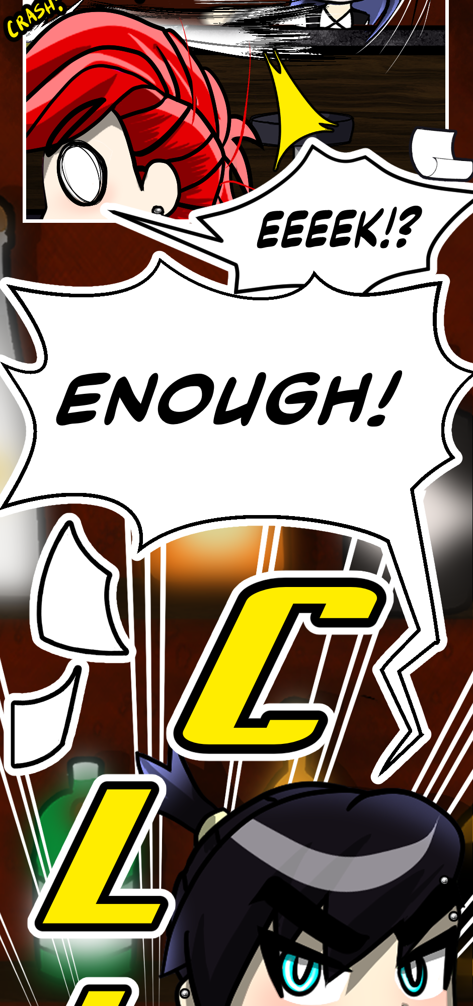 Helllooo. I have a few more episodes made, but I’m thinking about taking a break (already) to see if I can make a big people webtoon. It’ll take place right after 12 days.