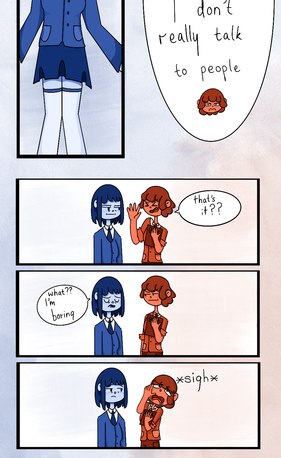 OML NO I PROMISE THIS COMIC ISN’T RACIST I MEANT IT LIKE THEIR LIFES ARE OPPOSITE NOT THEIR SKIN COLOUR I AM SO SORRY