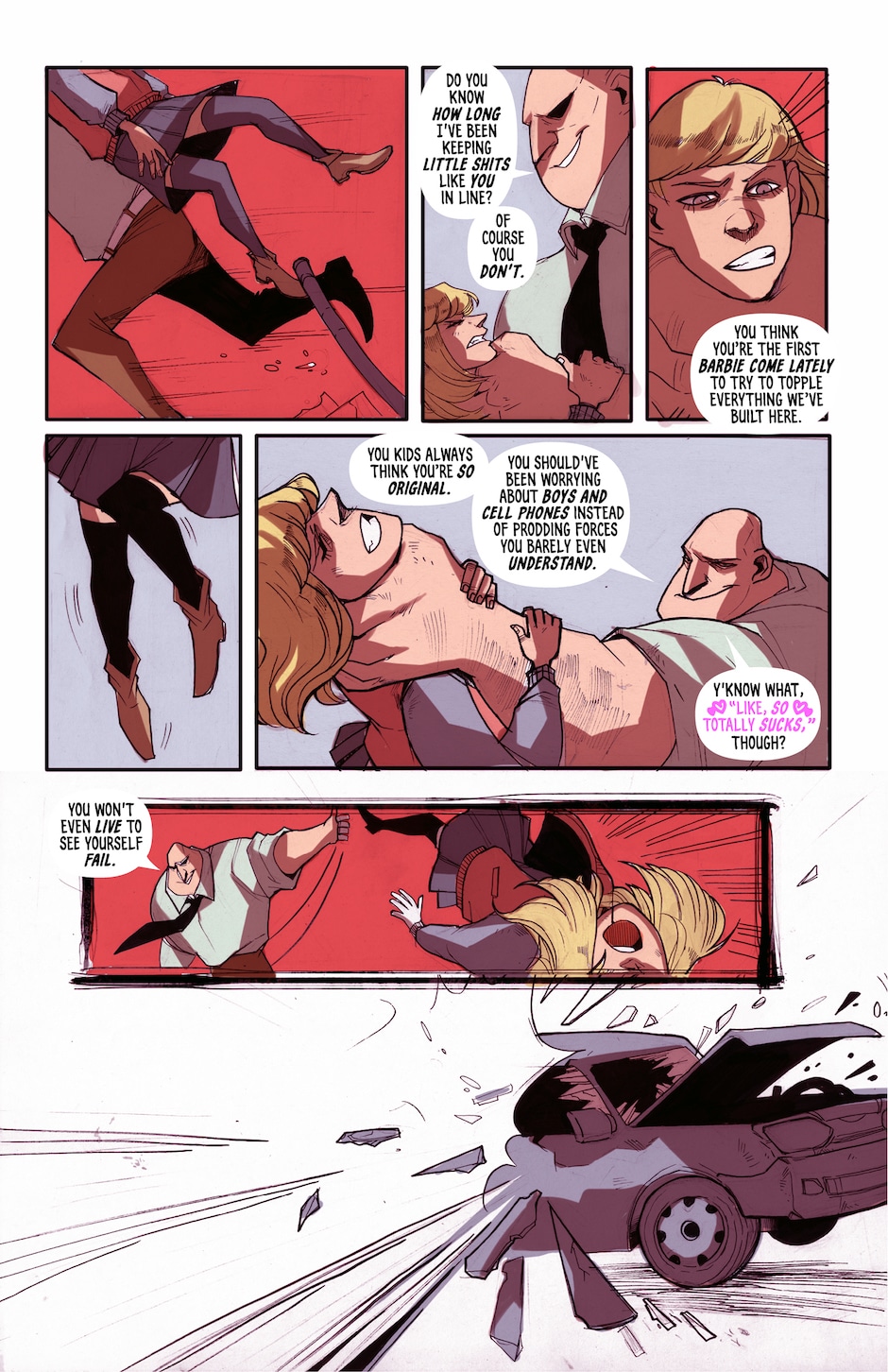 In other words, she gets into a fight.