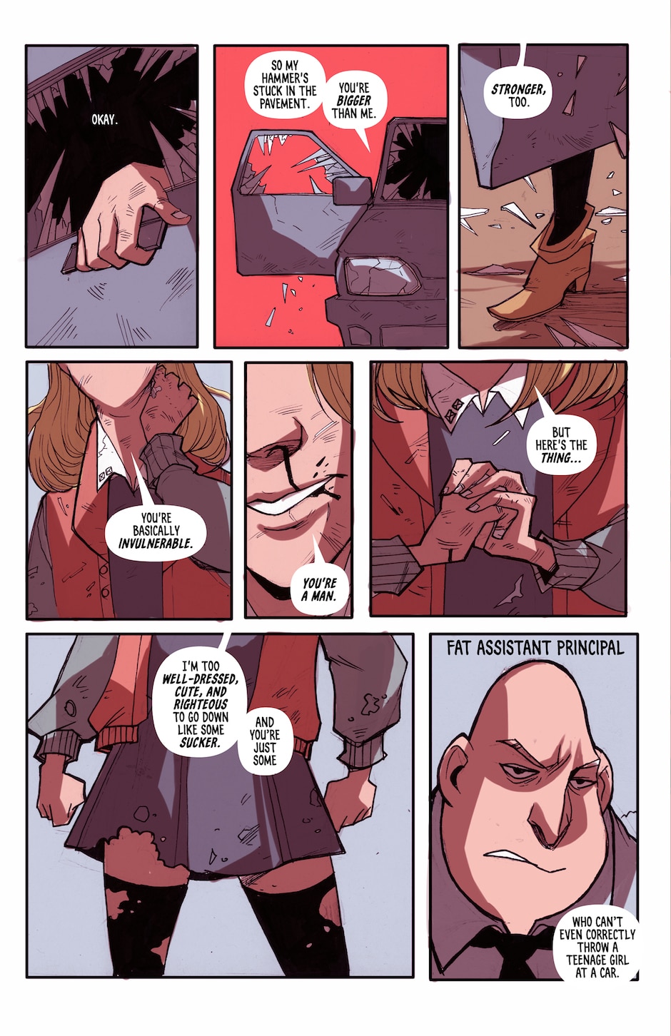 Madison Tiger is a teenager with the uncanny ability to puke up a giant hammer every time she eats. When she learns about the evil forces running her small town of Meteor Fell, she decides to put her new powers to good use -- by fighting everybody.
