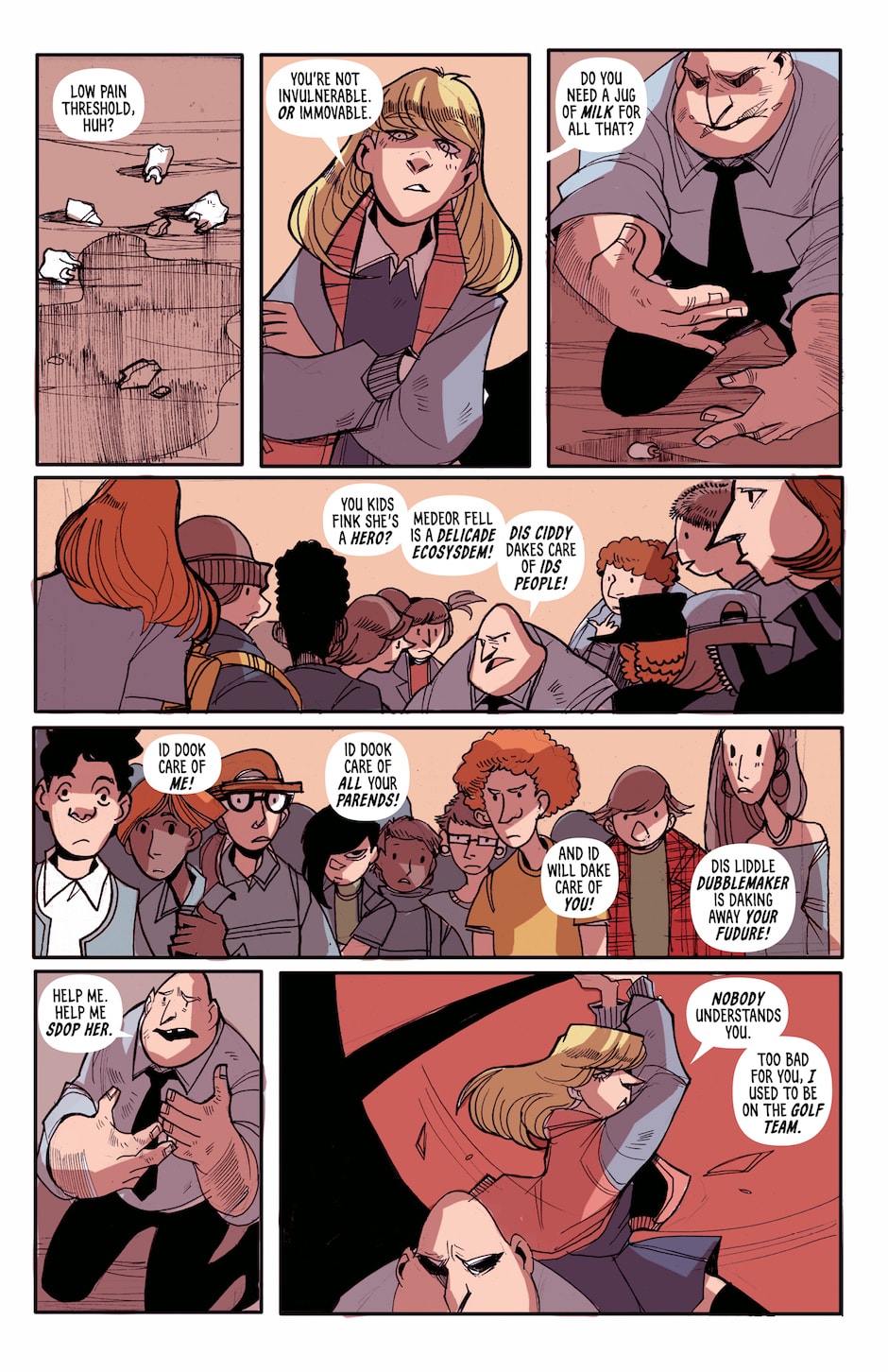 Madison Tiger is a teenager with the uncanny ability to puke up a giant hammer every time she eats. When she learns about the evil forces running her small town of Meteor Fell, she decides to put her new powers to good use -- by fighting everybody.