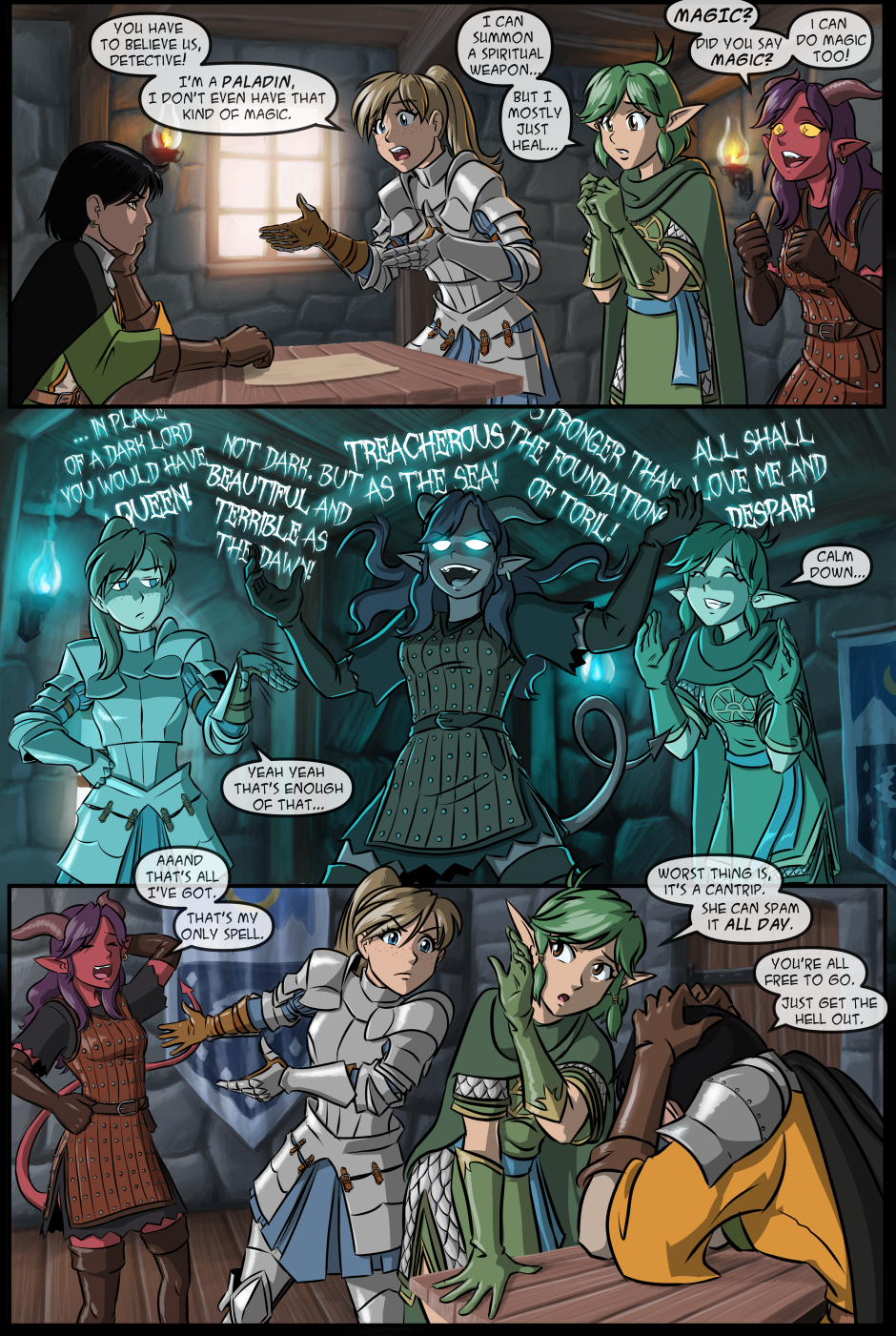 Stop right there, criminal scum! Oh no, our intrepid adventurers stand accused of the destruction of the inn. Can they prove their innocence?