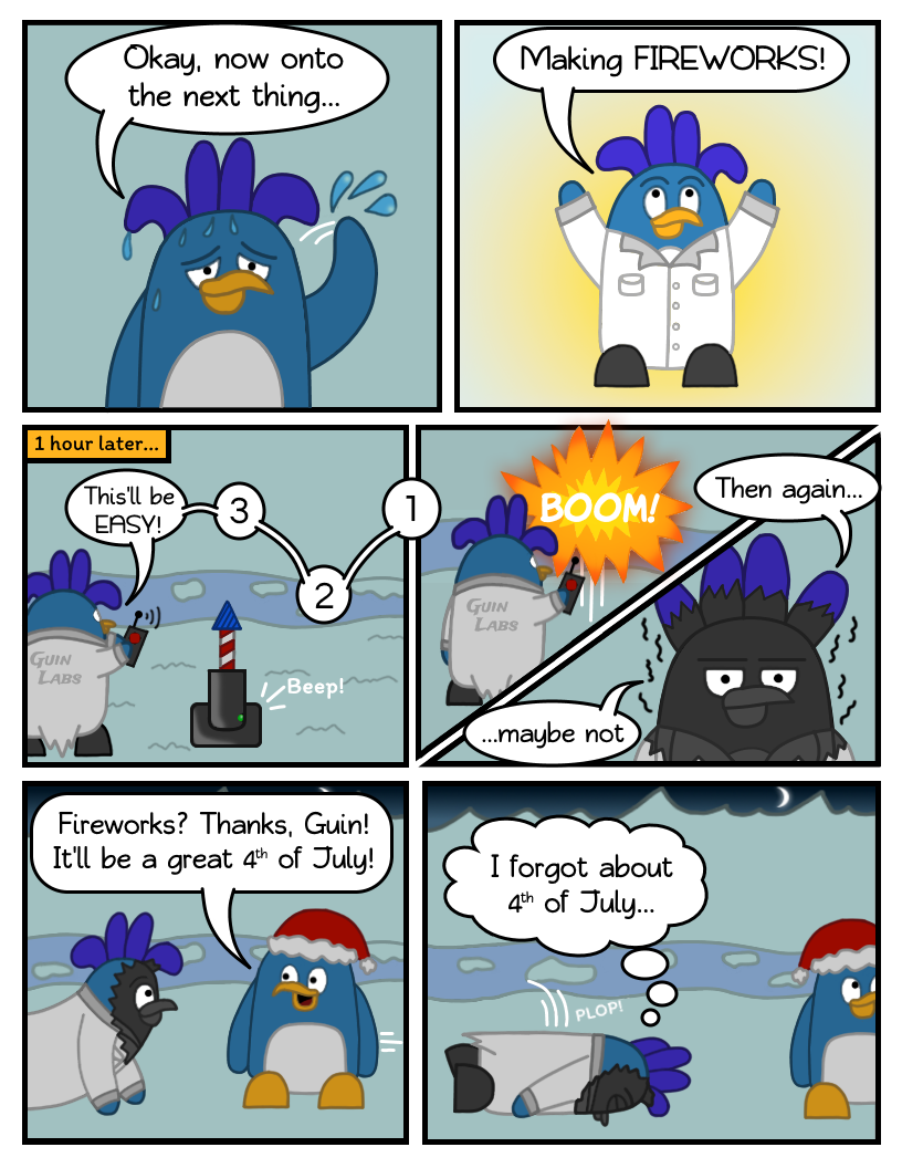 Guin's next project is to make fireworks, and apparently it's not for Independence Day. Whatever they're for, he finds out that rocket science is as hard as... well, rocket science!