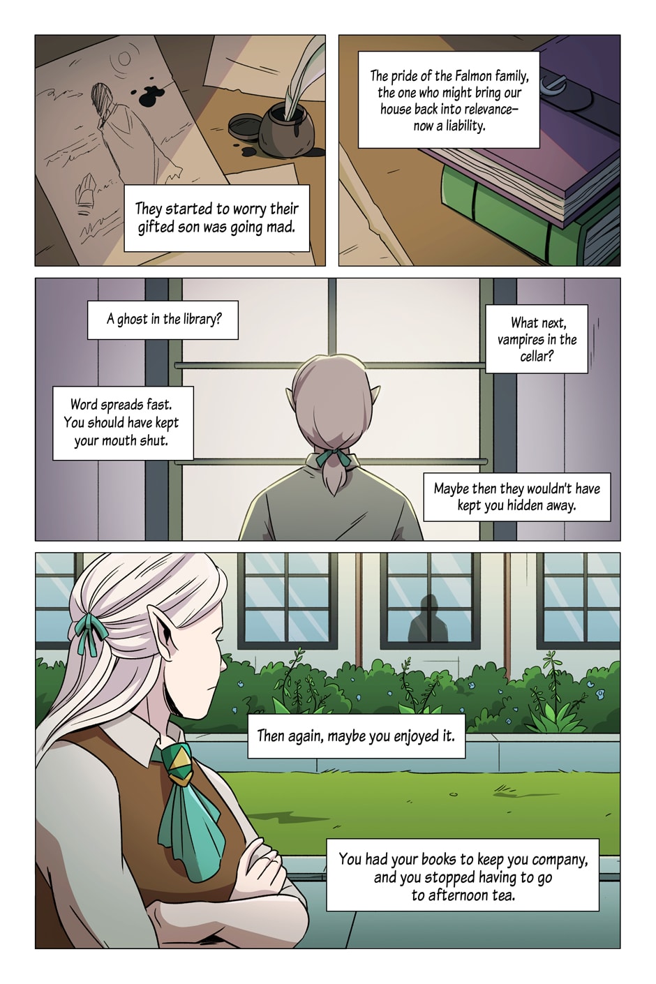 Elyris Falmon, prodigal son and pride of his noble family, has been perfectly content living in solitude within the walls of the High Court and following his mother’s meticulous plans for his life. One day, he is called to travel across the sea to cure a mysterious illness and is unwittingly sent down a harrowing path: one which may bring answers to strange paranormal experiences he had as a child.