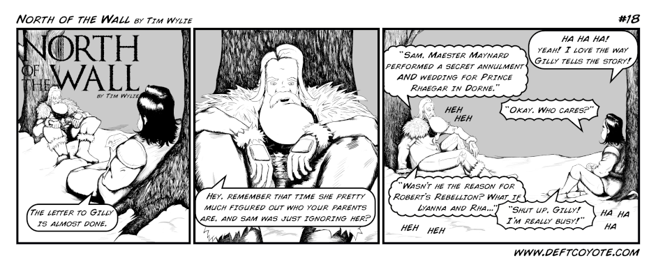 This comic strip features Jon Snow and Tormund Giantsbane following the events of the show as they travel and explore what's north of the wall. The series focuses on two friends pulling pranks on each other and having a good time. There are still mysteries to solve in Westeros, but they don't take the adventure too seriously.