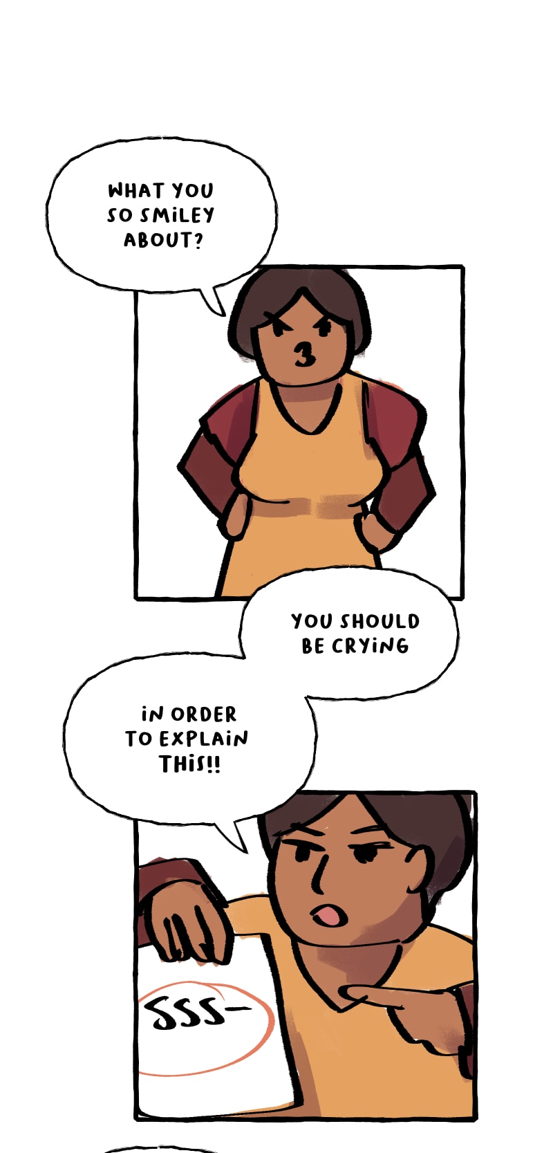 One more S out of that grade, and you'll be disowned.