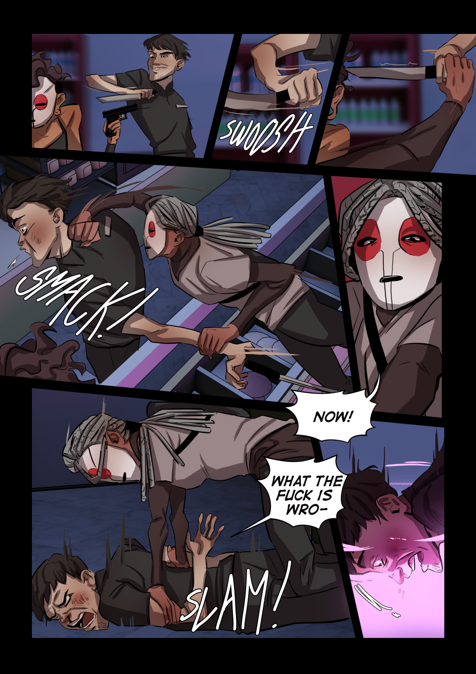 TW: This comic centres around themes of abuse, including abuse directed at children. There will be graphic blood and gore later on in the comic.