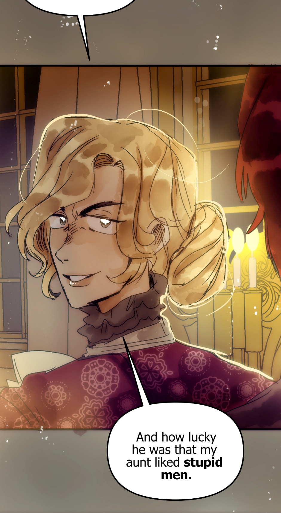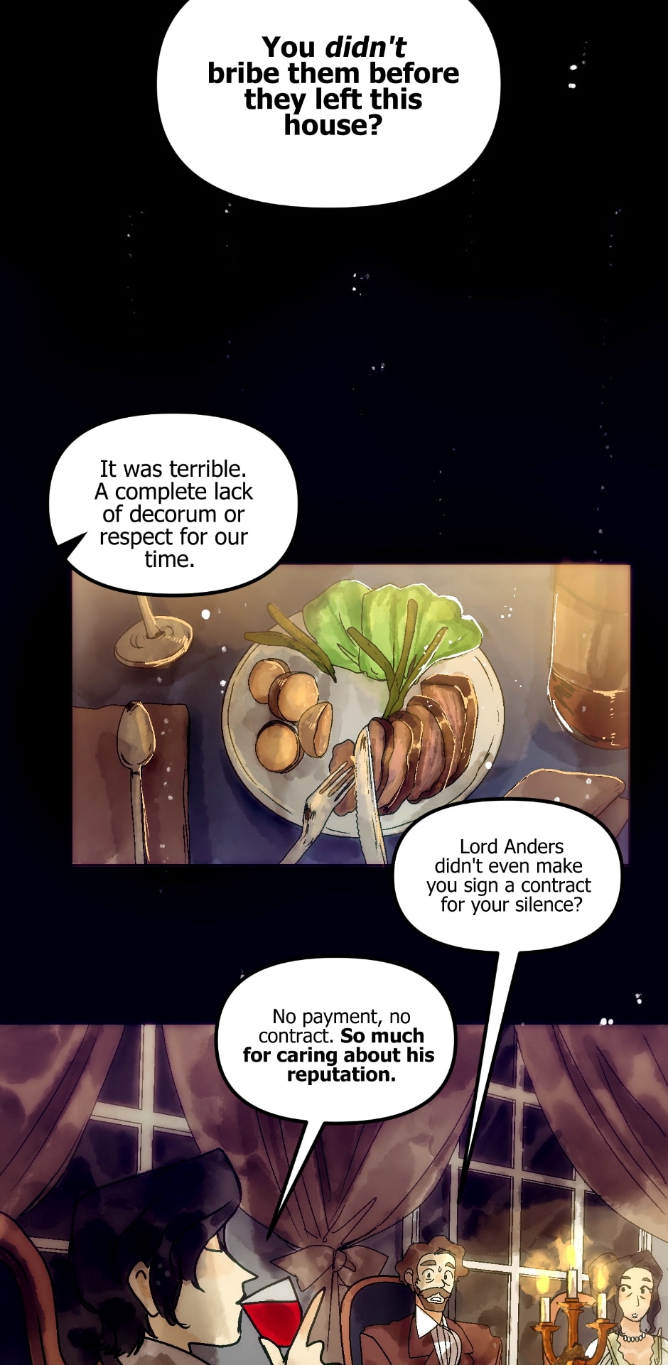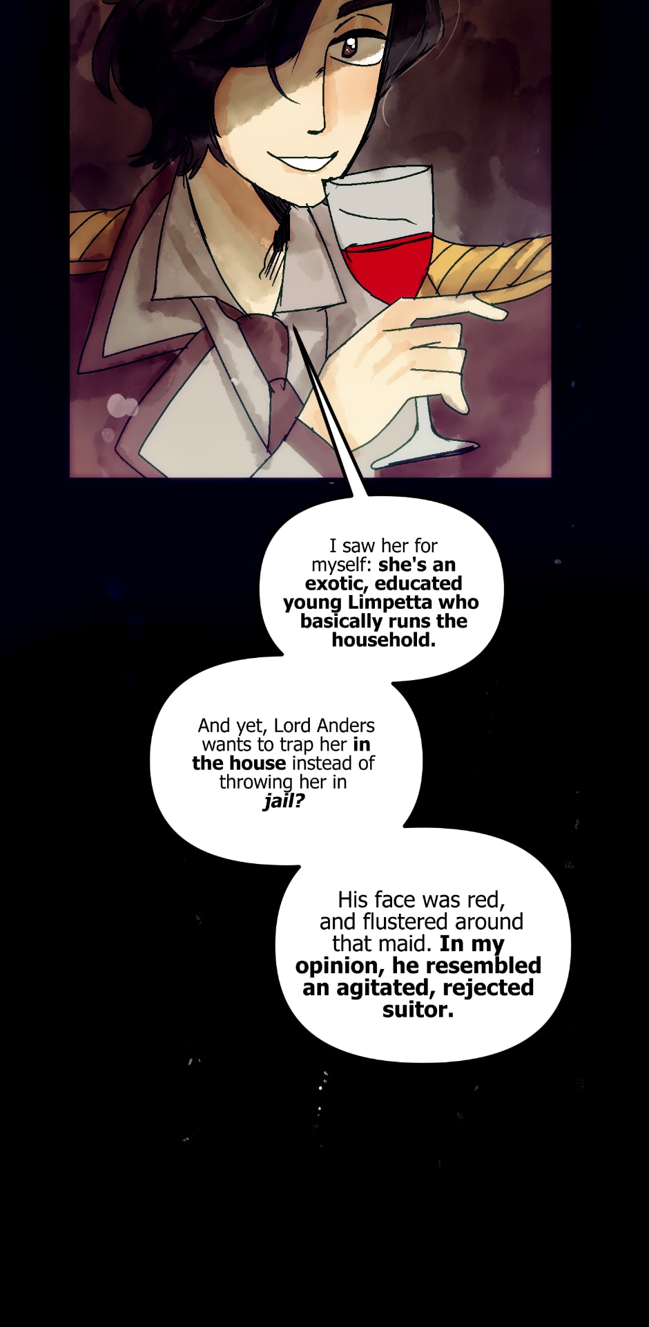 Love that colour of the wine he drinks in the last panel makes it look like he's drinking the blood of his enemies.