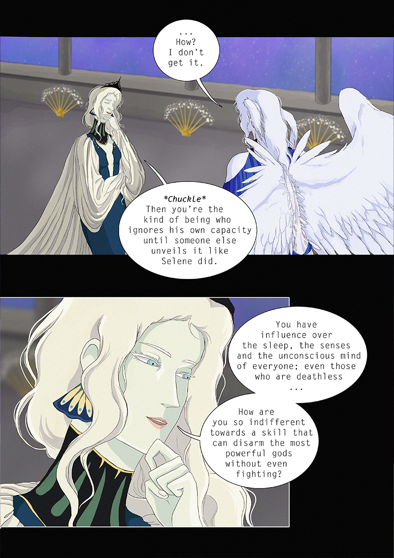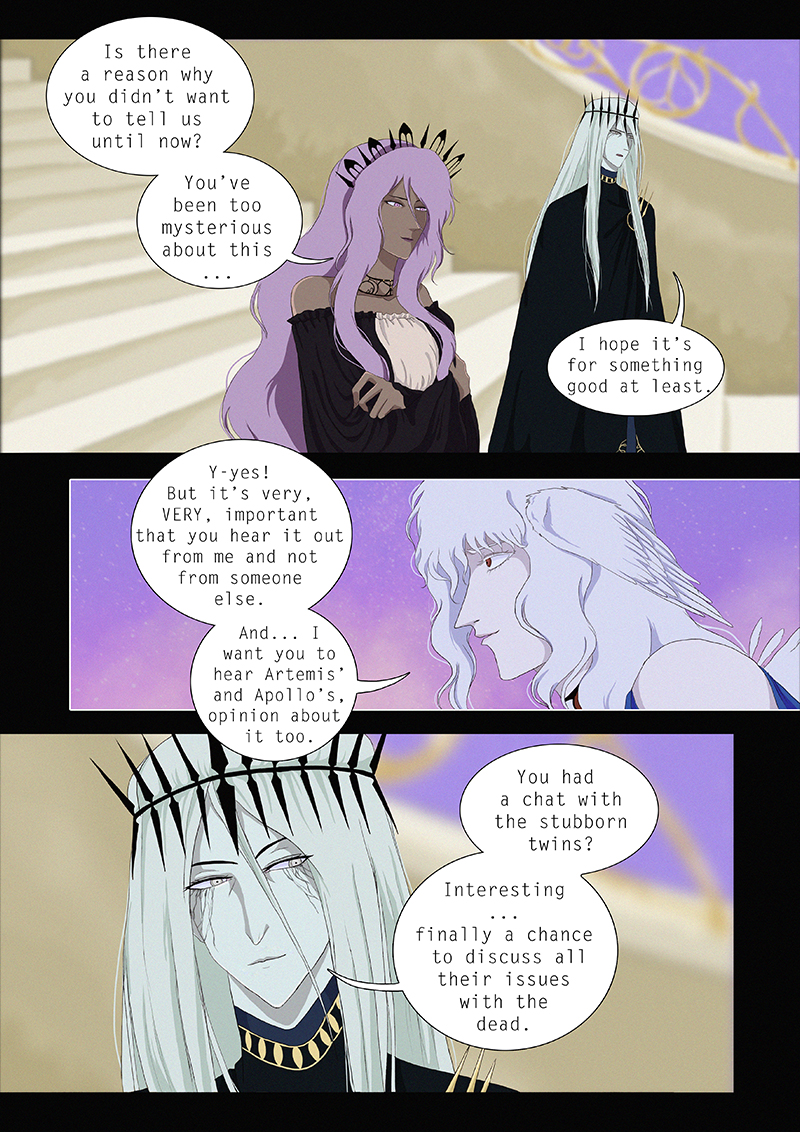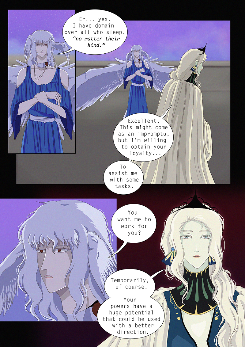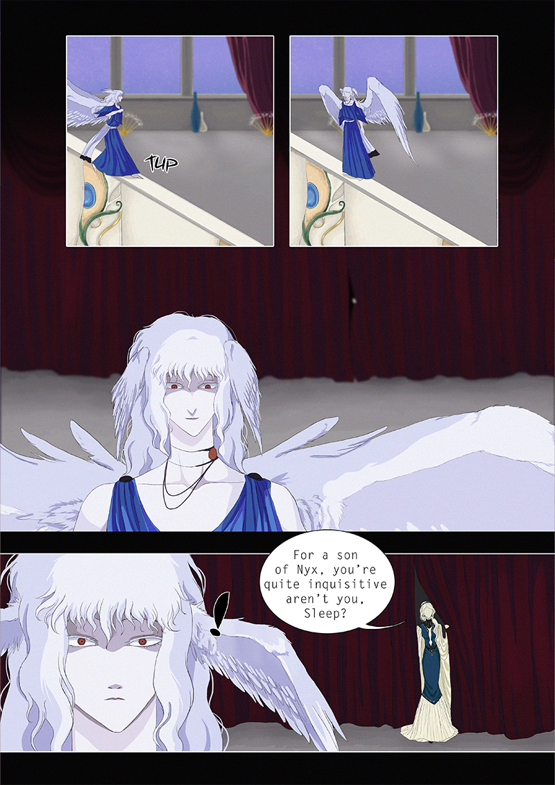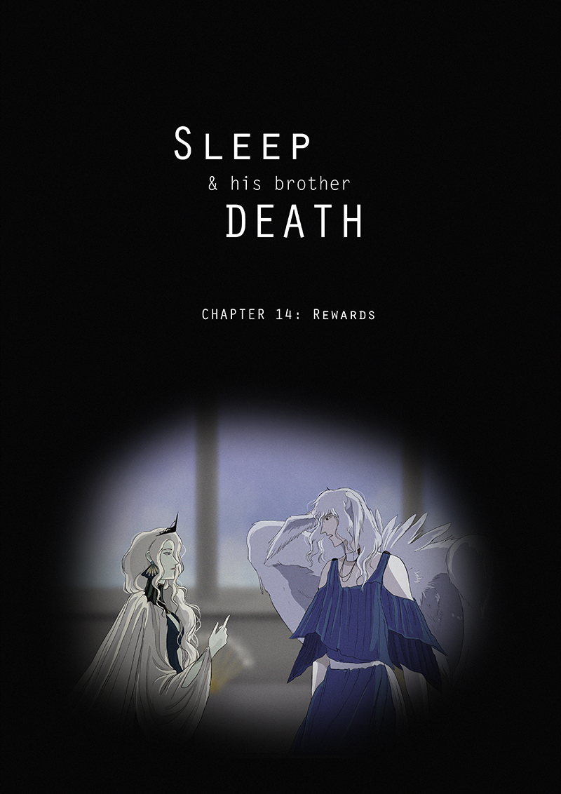 Hypnos and Thanatos share the same face, the same strength and a close bond in spite of their opposite personalities: While Sleep is gentle and embraced through his friendly nature, Death has grown cold and self-absorbed under the weight of his endless duty.