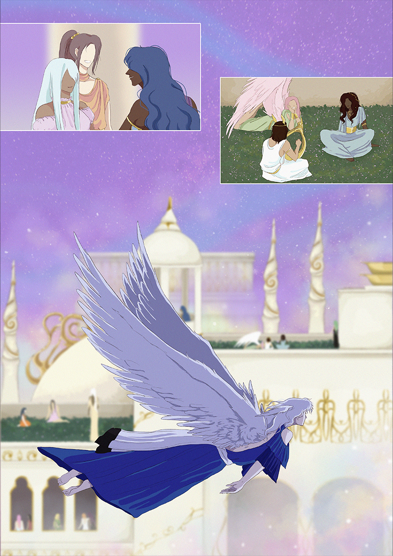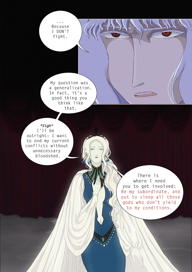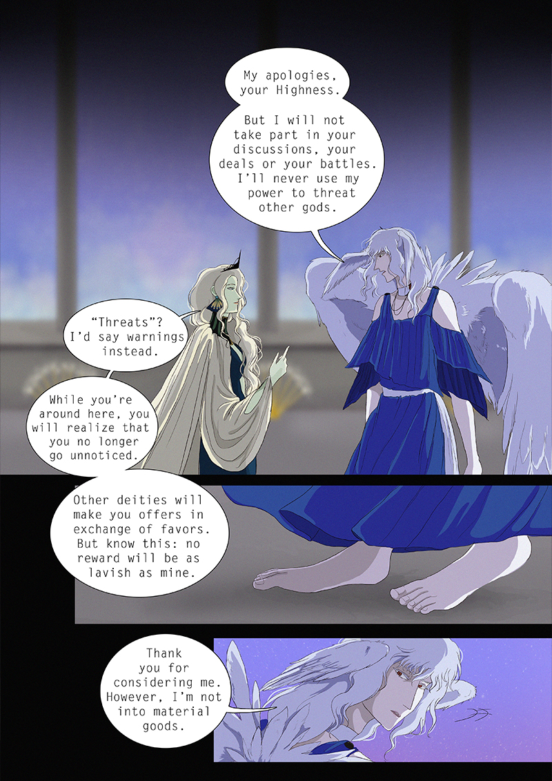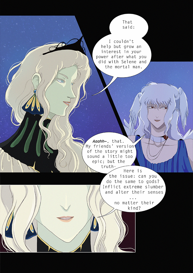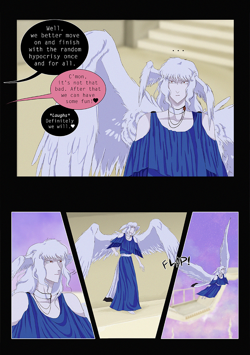 Hypnos and Thanatos share the same face, the same strength and a close bond in spite of their opposite personalities: While Sleep is gentle and embraced through his friendly nature, Death has grown cold and self-absorbed under the weight of his endless duty.
