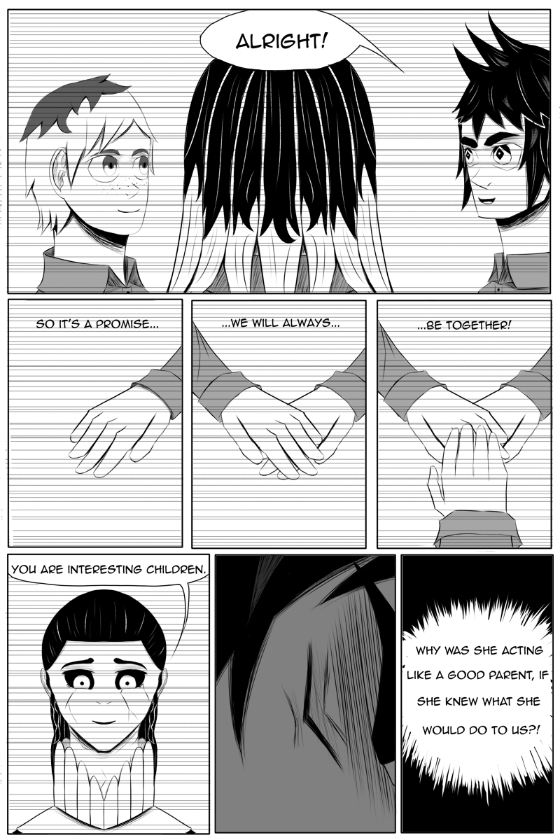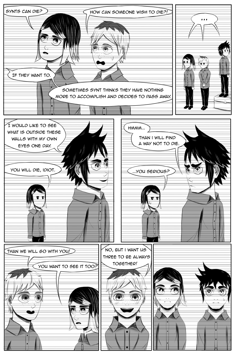 God dammit I have no idea how to be consistent with my art style xD. Good news is that in next update we will end first chapter and some more exciting stuff will come in. Also in next pages I might finally simplify my style a little bit, because I have to make pages faster to if I want to finish this story before I'm 30... Anyway, see you for two weeks!