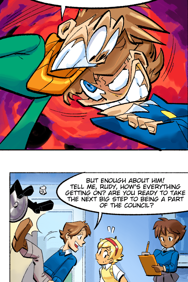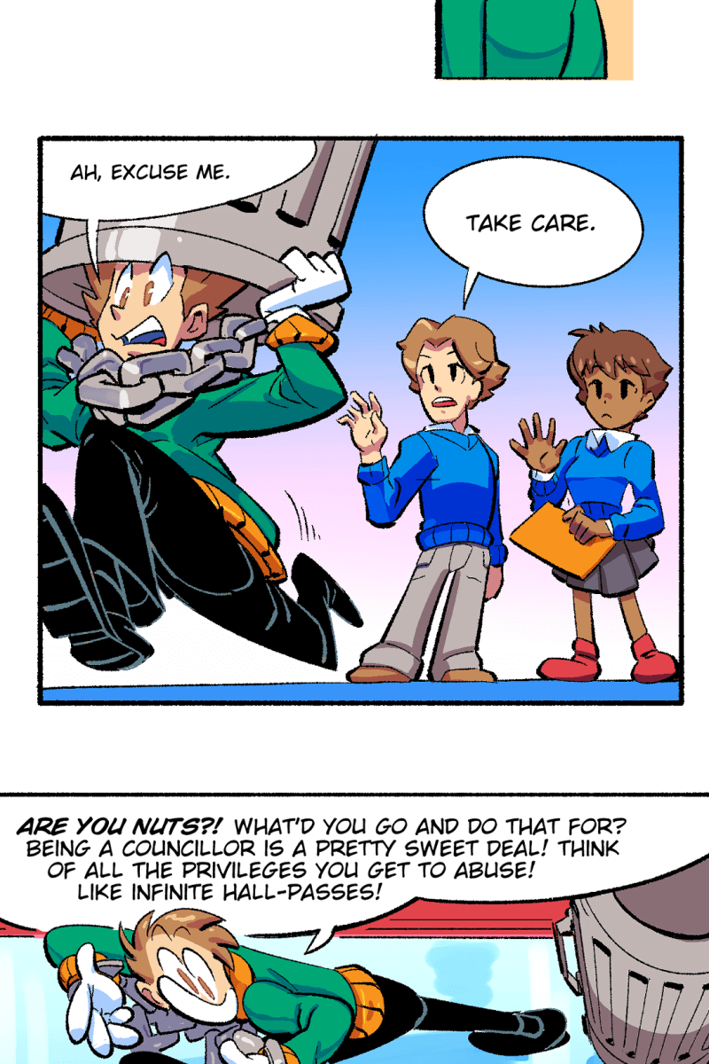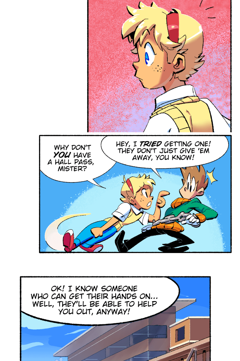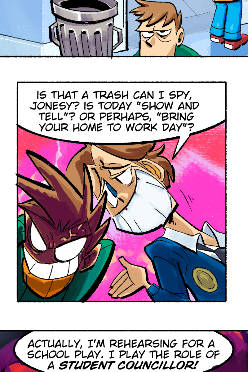 While other people have fantastical adventures in and out of high-school, the 'normal' student Conner Jones runs a bartering system to get his hands on cool gear and hopefully find his true calling in life. Conner views his superpowered classmates as an intimidating high standard to reach up to - but the feeling may be mutual!