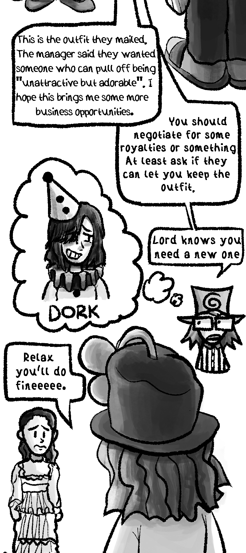 The Clowns discuss Rue's new outfit and business deal. Frank and Candy try to give support.