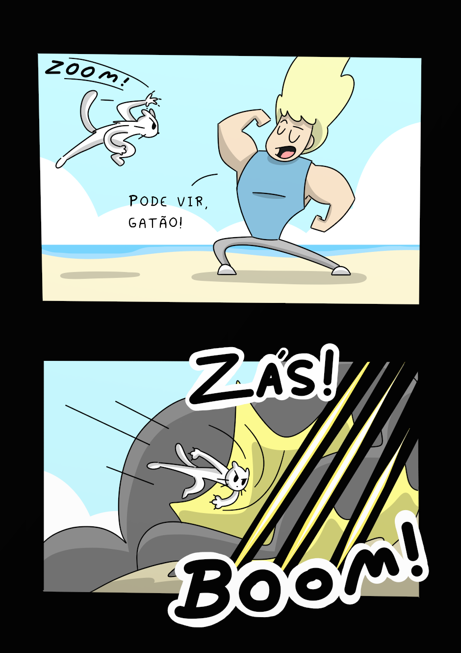 Para contar a saga de Hero e Siri no Grande Torneio de Artes Marciais, fiz essa HQ com traços super simples e uma história leve. A ideia é expressar as abobrinhas da minha cabeça e, ao mesmo tempo, contribuir para o lazer de quem se identifica com essa categoria de humor.