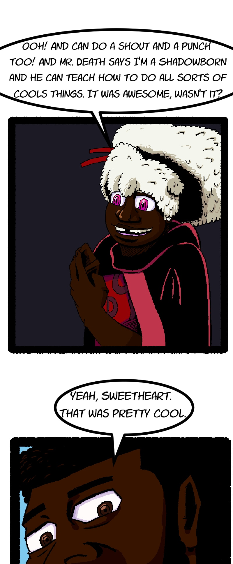Growing up with her mom and Death in the Underworld, the easily excitable Zadie Gailes never has been a normal kid. Well that and the mysterious entity she can summon and fuse with, Dark Divine.
