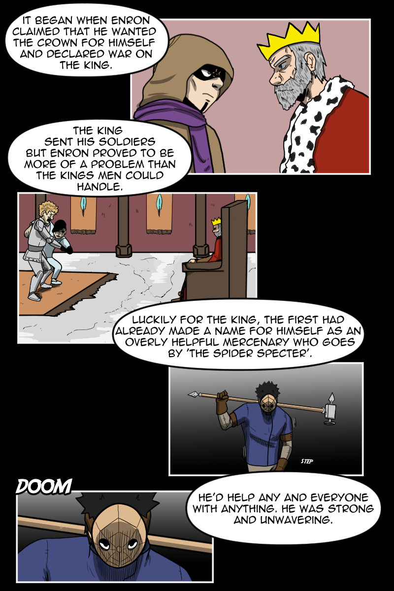 Desmund Devera's a kid that just wants to stop moving city to city and have a chance at a normal life. That all changes when he discovers the corpse of a famous superhero who disappeared over forty years ago! Series updates every other Monday! Please share the series if you like it! Subscribe to Patreon to get early access to Spider Specter Chapters!