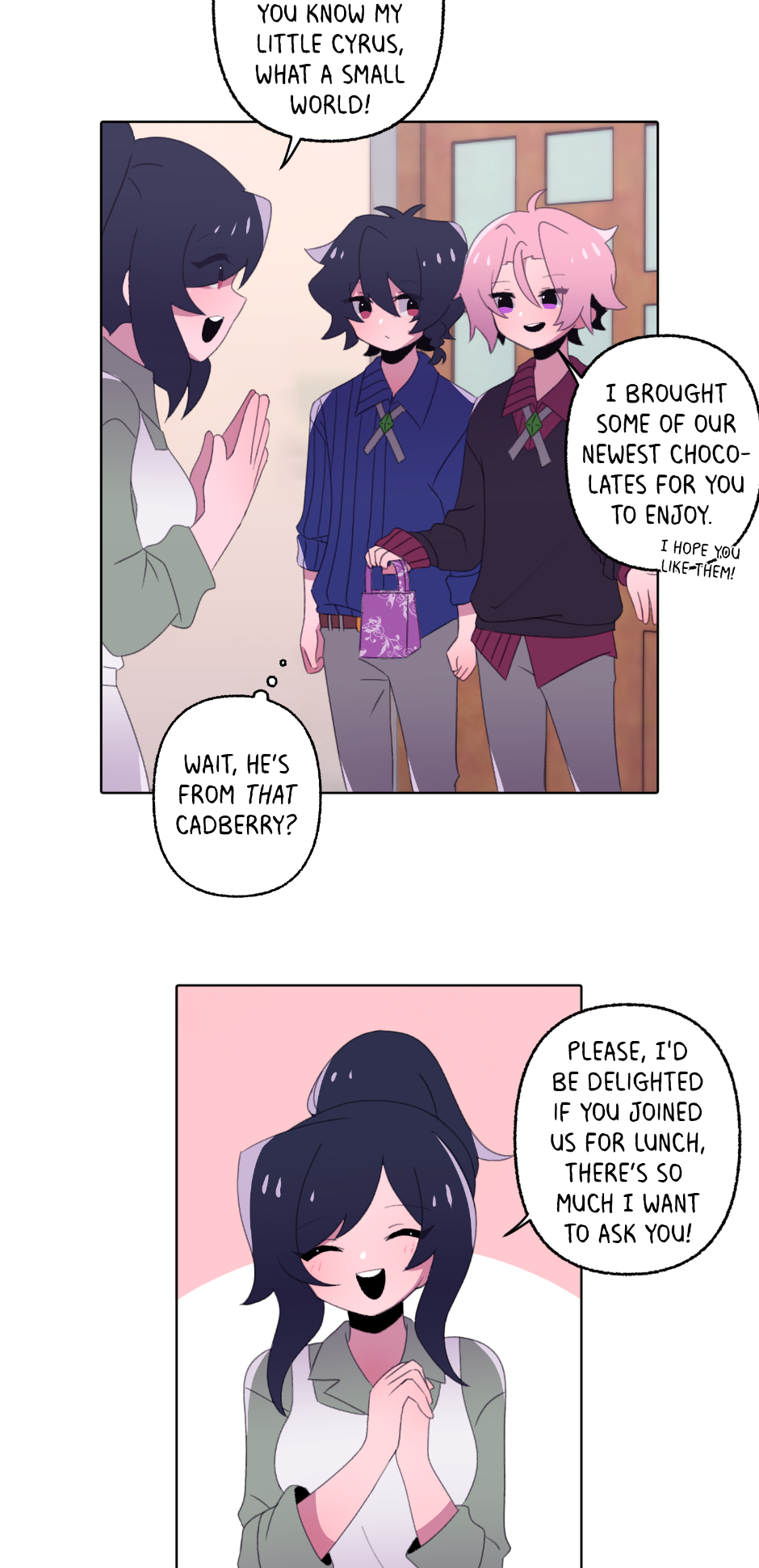 Cyrus Knight isn't alone in vying for the title of top wizard at Hortus Academy; standing in his way is magical prodigy Lain Cadberry. But when Cyrus finds himself in a tight spot, he's forced to accept help from his nosy rival. Can this unlikely duo boost each other up, or will they get swept up together? [Updates every Monday except the last week of the month]