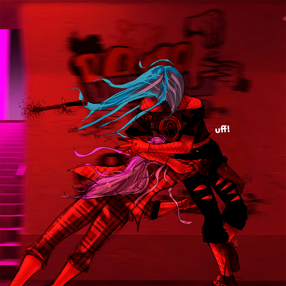 Teri and the other Teri fights in a subway station and everything gets too violent to be SFW.