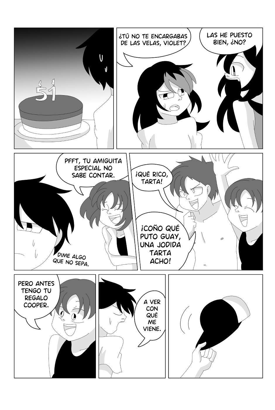 EEEHHH EL SEGUNDO CAPÍTULO1!! Quiero dar un gran aviso, y es que en la historia original me flipé muchísimo con los cumpleaños y se vienen como cuatro cómics además de este sobre gente cumpliendo años XDDD. De hecho, en los cómics originales que hice en 2018 hice todavía más cómics de cums, pero empezaron a hacerse demasiado repetitivos, aburridos y de relleno, así que he dejado los que más me hacían gracia o que desarrollaban o presentaban mejor a los personajes ^^