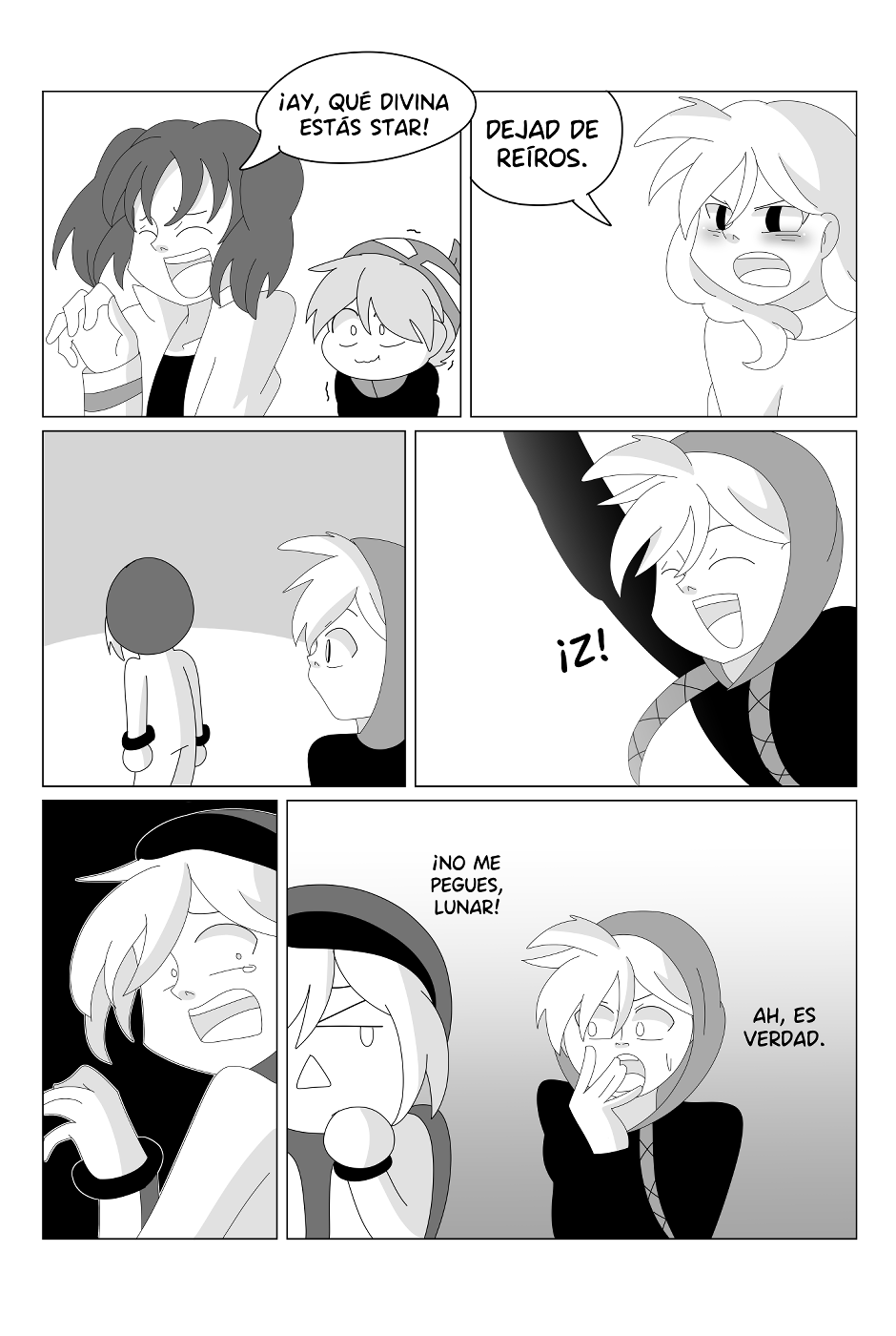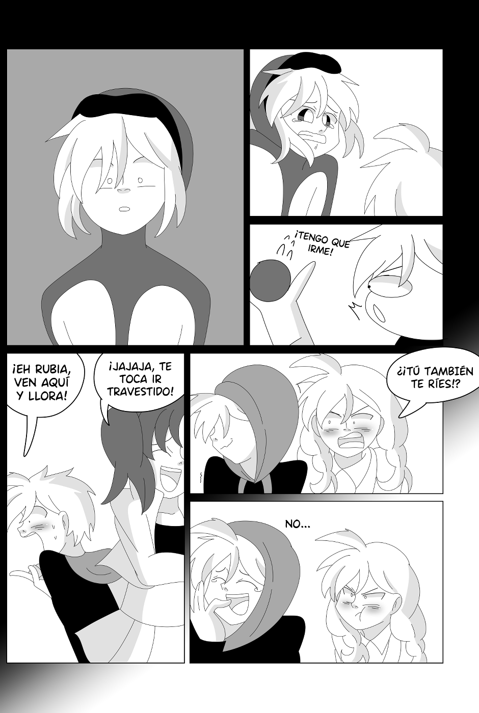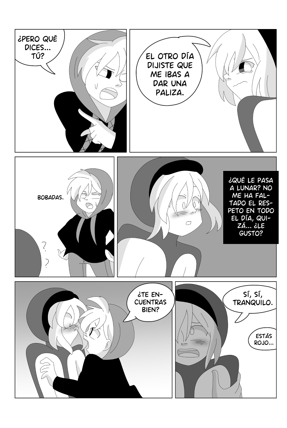 Cuando estaba creando a los personajes pensé: entre tanto hermano que estoy dibujando debería tener dos que sean gemelos, y mejor aún, que se intercambien las identidades para generar situaciones graciosas. Pero ahora mismo pienso... ¿Qué deben de pensar la gente que tiene un mellizo y lee el cómic? Porque obviamente es una situación muy surrealista la de la historia, pero tengo esa curiosidad ahora (??