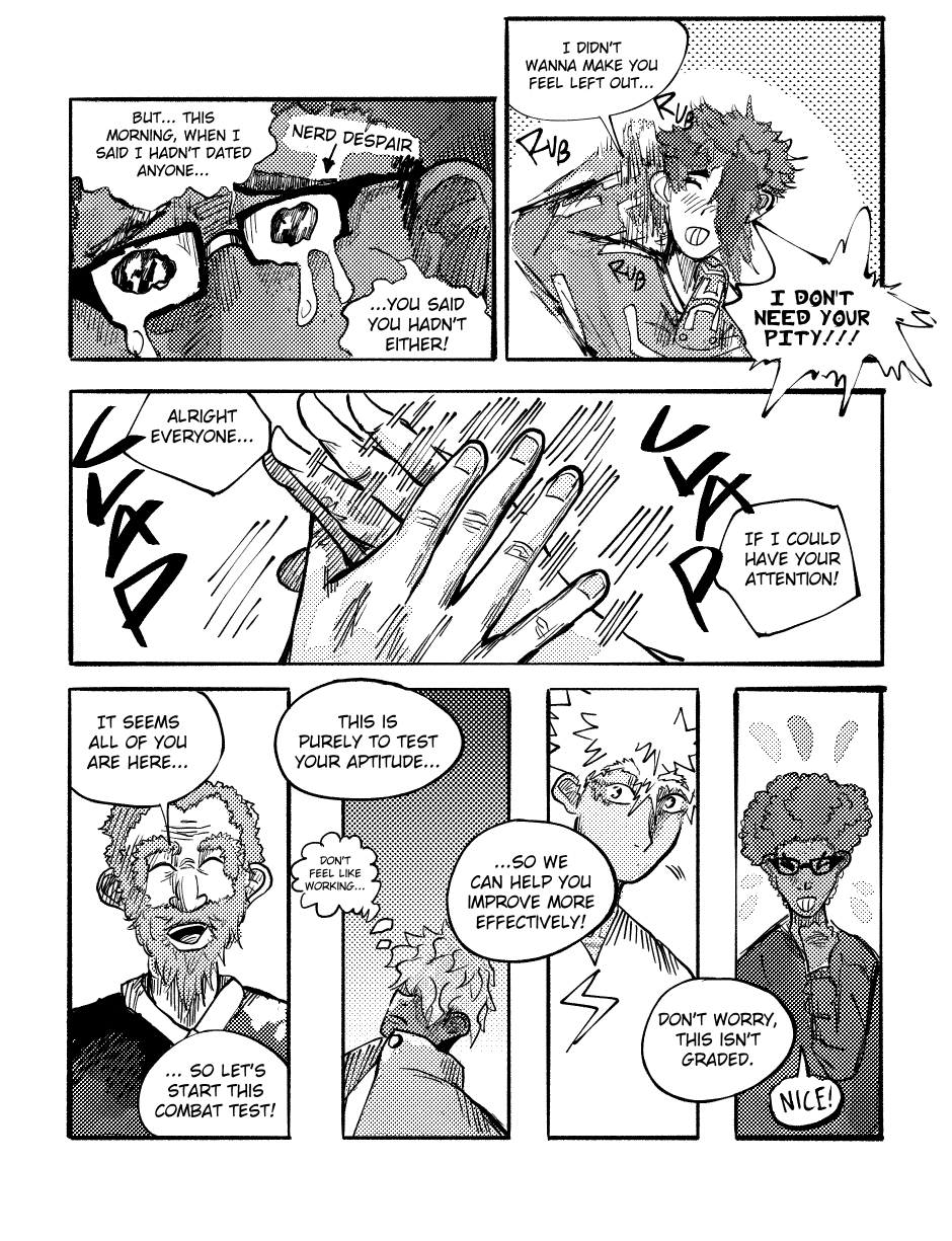 Classmates clash in the academy's Passionate combat test, and Tomokazu faces a foe he can't see himself beating!