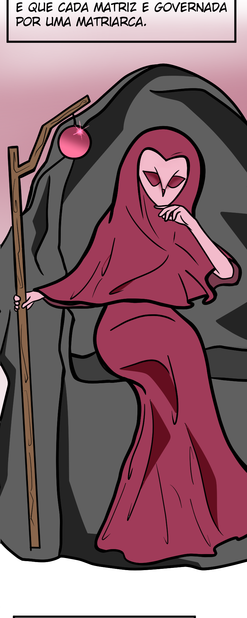 Lembrei da Edalyn Clawthorne com a matriarca segurando o cajado.