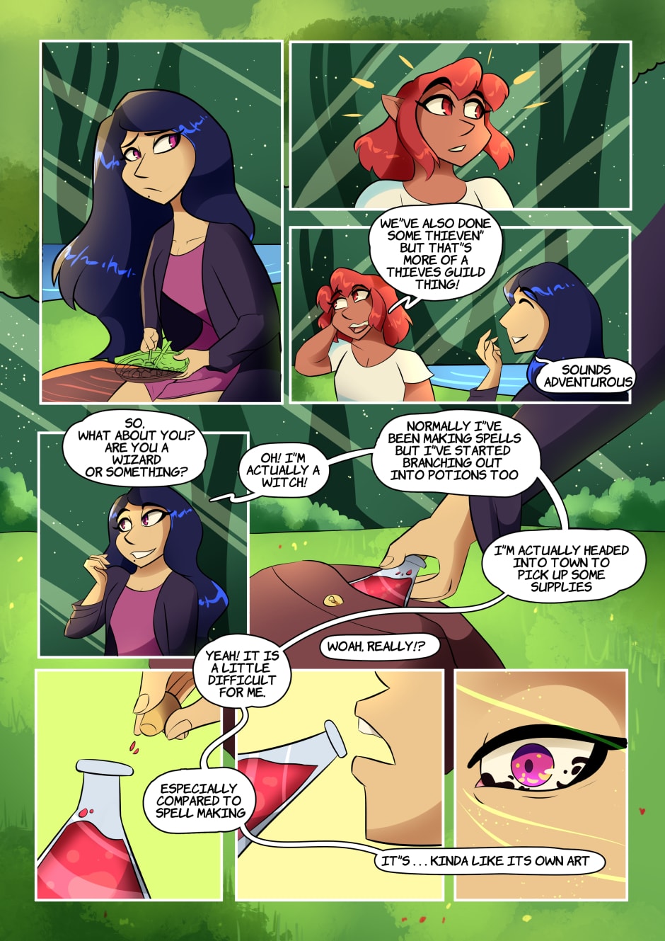 You never know who you're gonna run into, especially deep in the woods. But when a wandering Witch comes across a beaten and battered Rogue, they can't help but travel together and maybe fall in love.