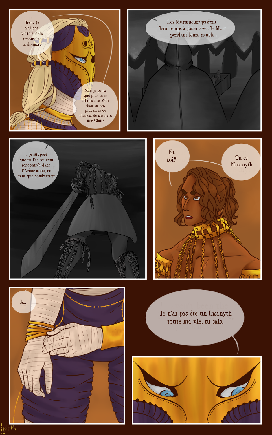 La Cité du Chacal n'est plus. Tombée aux mains de la Mort, il ne reste de sa grandeur que son Insanyth, légendaire bouffon, et un Combattant. Forcés de quitter les murs protecteurs de leur Cité, Nyth et Maats se retrouvent plongés dans un territoire en guerre, chassés par une menace à laquelle nul n'a réussi à échapper: la Mort. Insanyth est une histoire de découverte. Une histoire d'acceptance. Une histoire de mort.