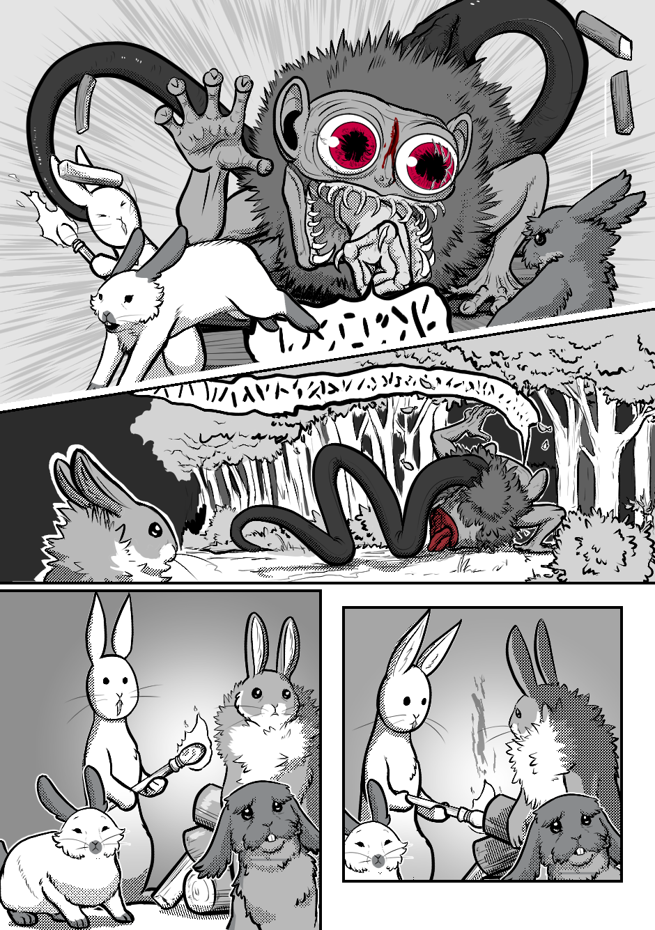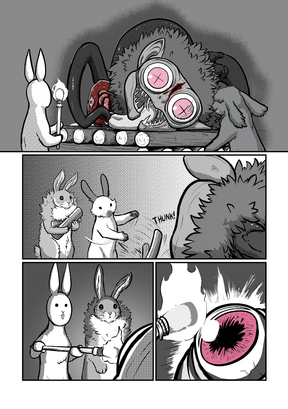 Just kidding! I drew an epilogue! Disposing of dead monster parts goes perfectly fine. Originally drawn in 2020.