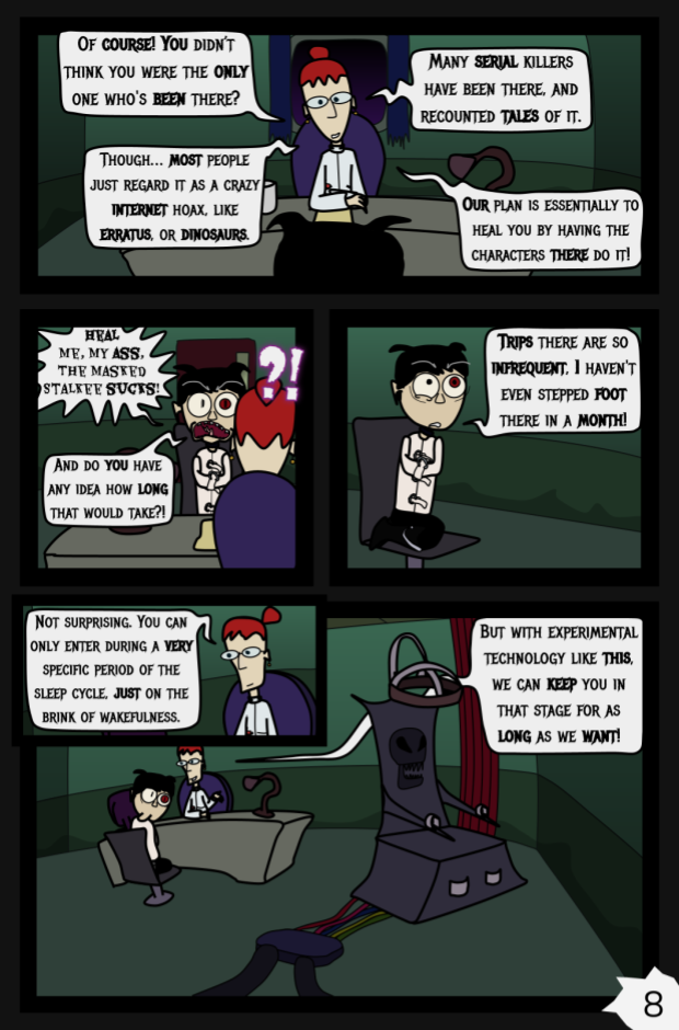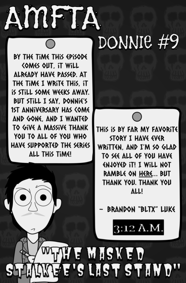 Donnie finds himself in a secret mental health institution which traps him inside the dreamscape. Meanwhile, The Masked Stalkee and Childhood are preparing to "end this thing."