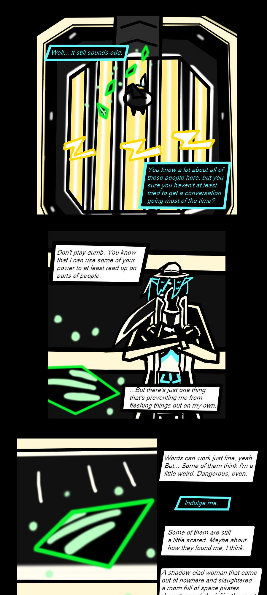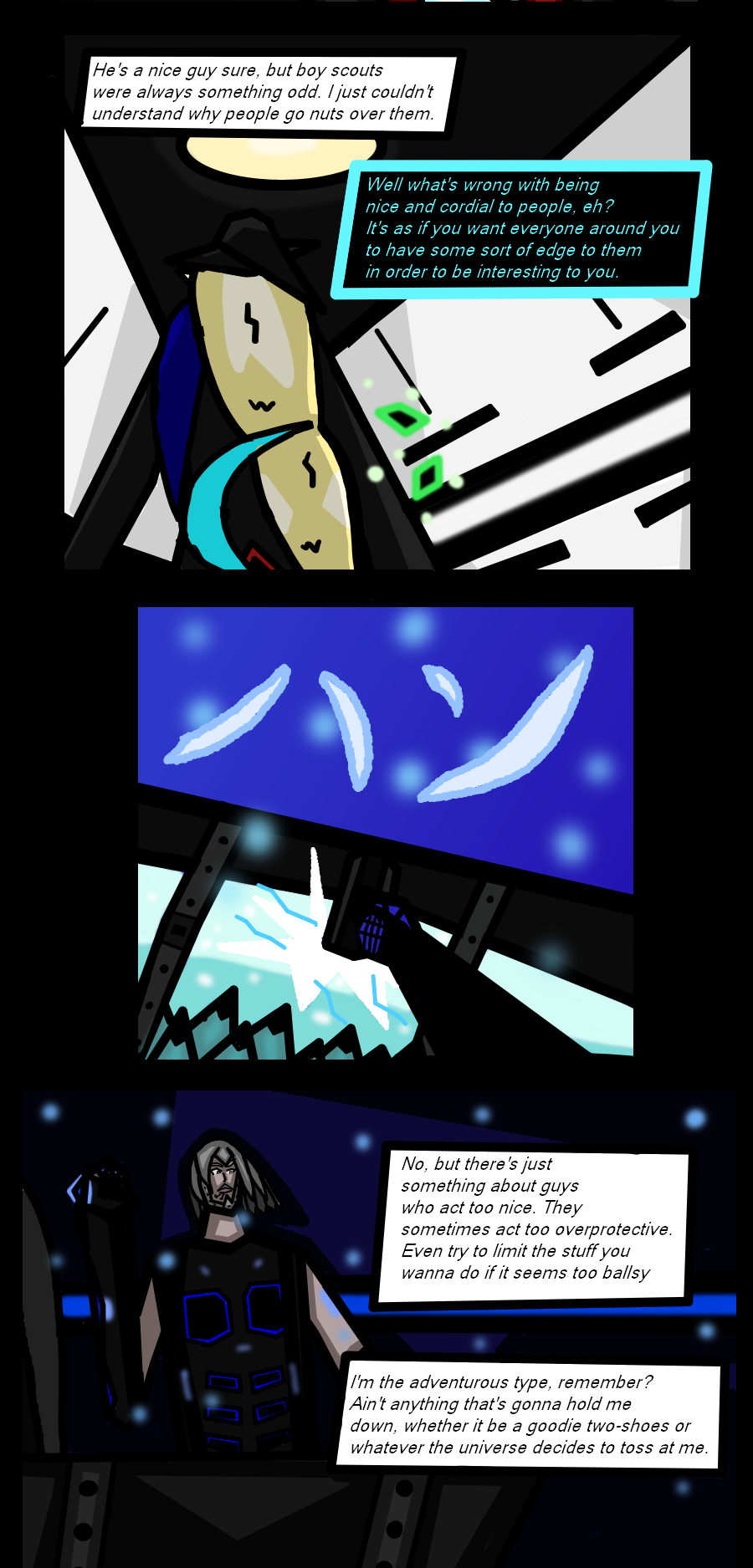 "A woman that was found at an op as a third-party between Neo Gear and rival Space Pirates awakens after the Omvirid conflict. Named 'Lizbeth', she seeks her self-imposed 'Cousin' Zackarack within Meta-Laika. And yet, what purpose does her 'Double' serve?"