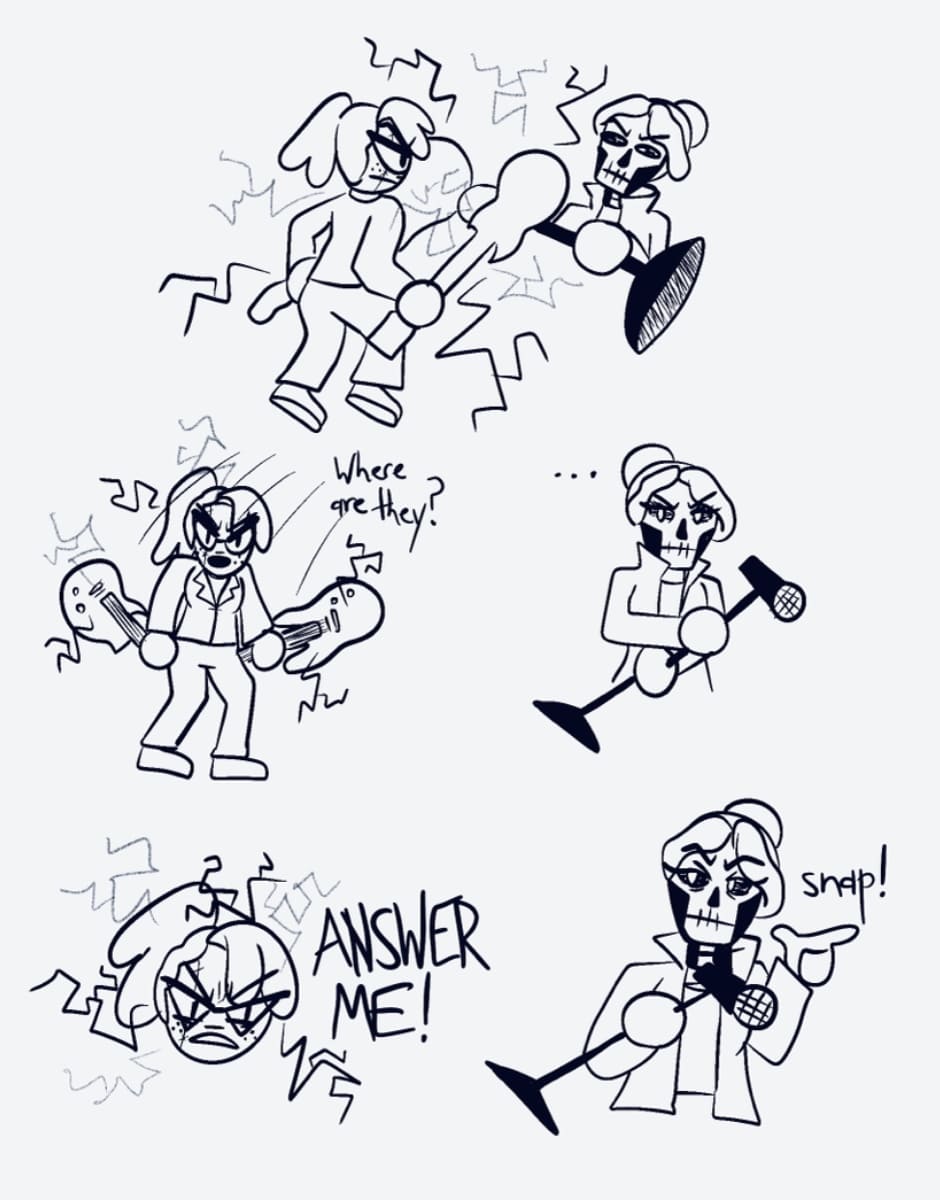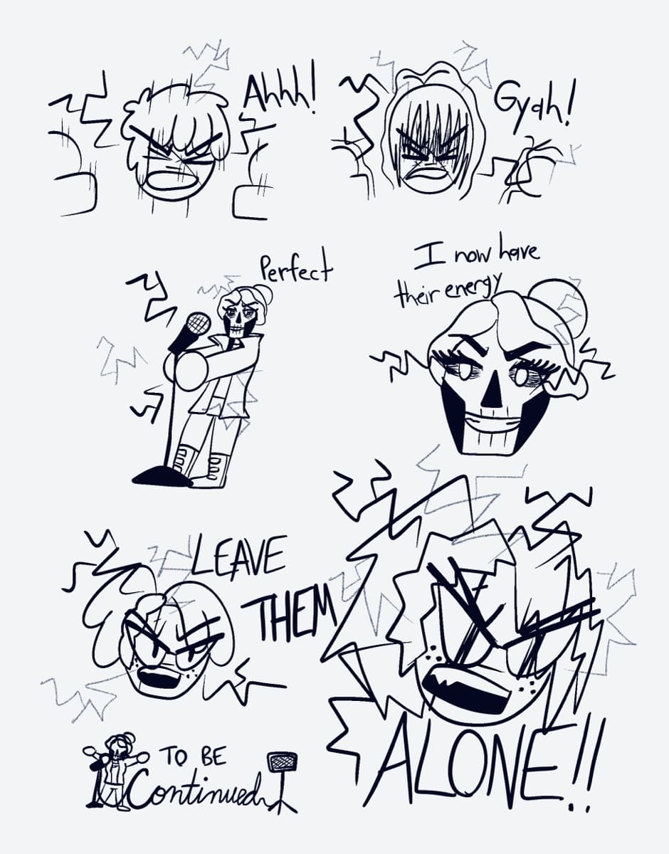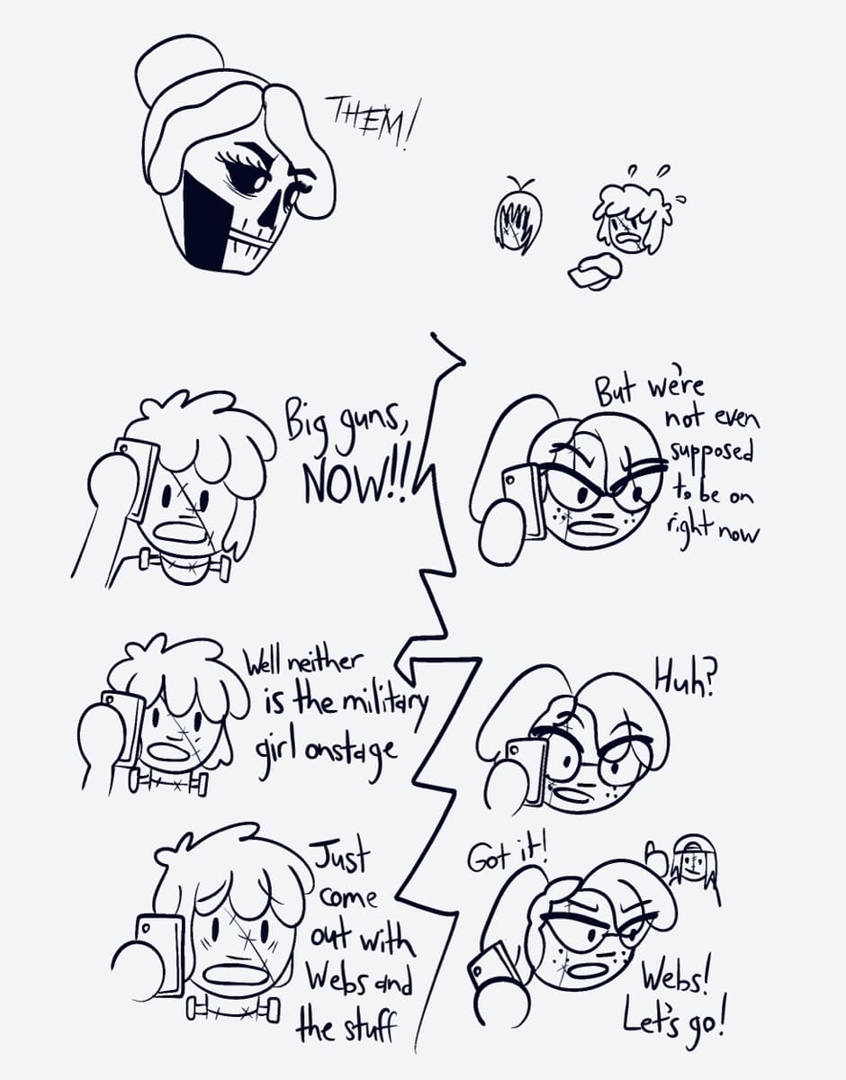 The open mic night begins, with a flashy interruption by a girl in skeletal face paint. What’s her plan?