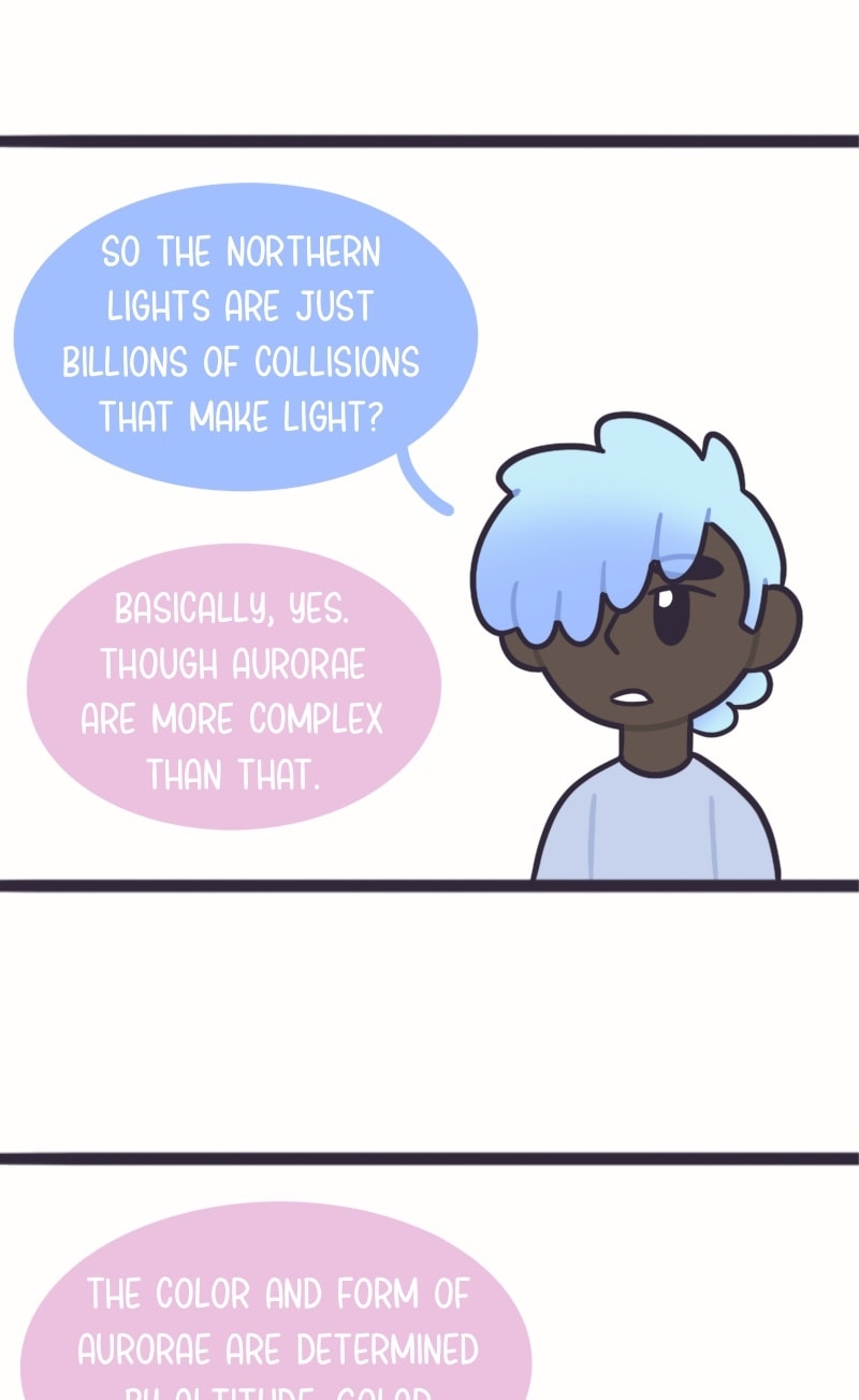 School has been crazy lately, so I haven’t had time to work on new episodes. However, this bonus comic was part of an astronomy project about Aurorae, so I’m sharing it here! Finals are coming up soon, so there may not be any new episodes for a bit. You can follow me on Instagram for updates <3