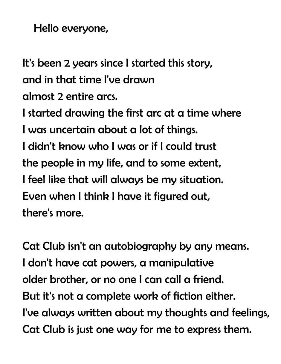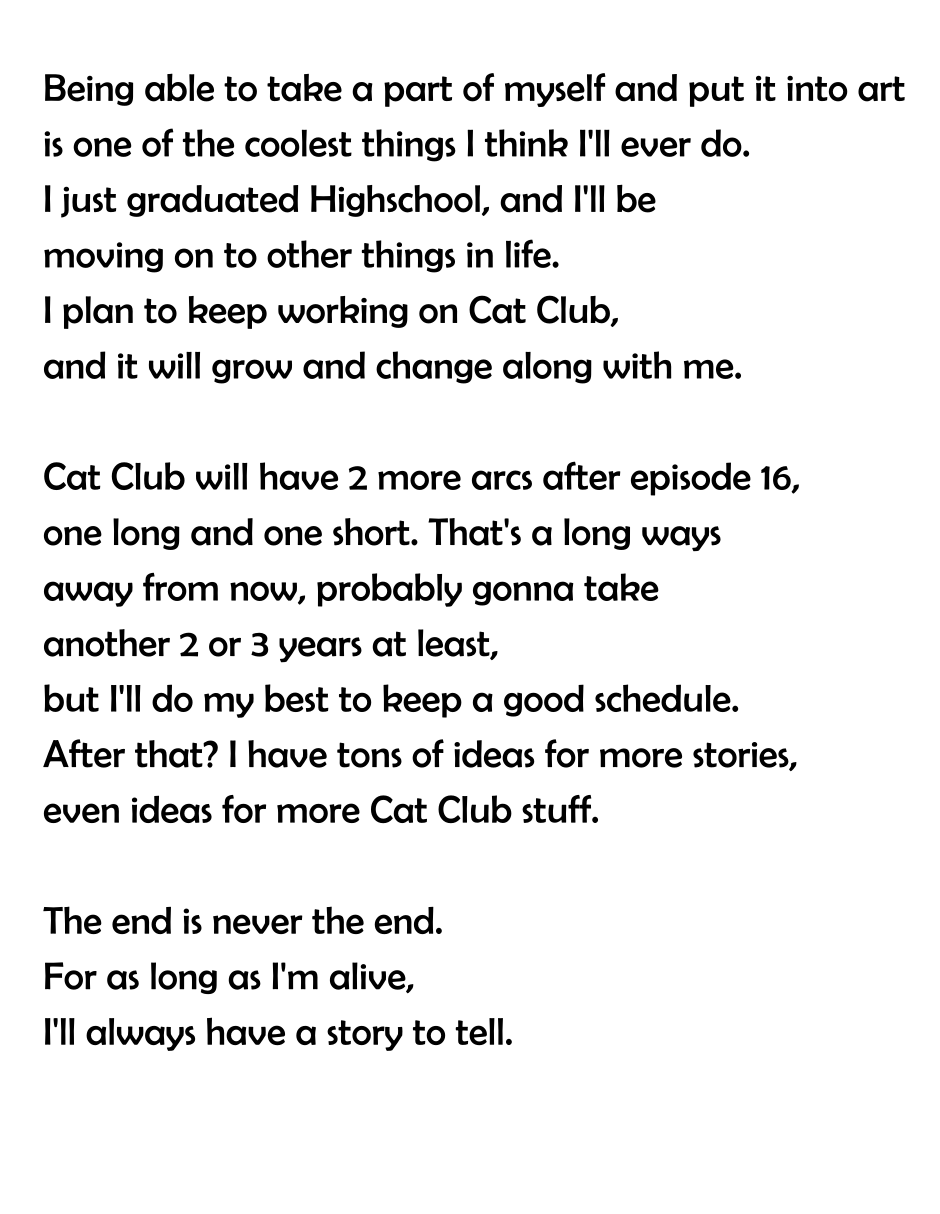 Anyway, I wish you the best for your future and that of Cat Club. It was amazing witnessing the growth of the series over the course of these two years and I can't wait to see how you'll improve in the future!