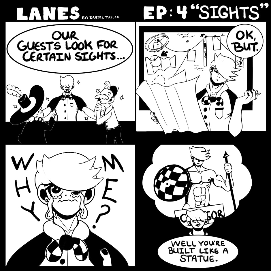 Meet Clover the newest member at the local hot boy, bowling alley Lanes. Team lead Kai has already got his eyes on him, while the owner has other plans for both employees. What mystery will unfold as Clover and Kai connect? What goes on in the bowling alley at night? Join in reading this short comic revolving around the alley and our lovable goofs.
