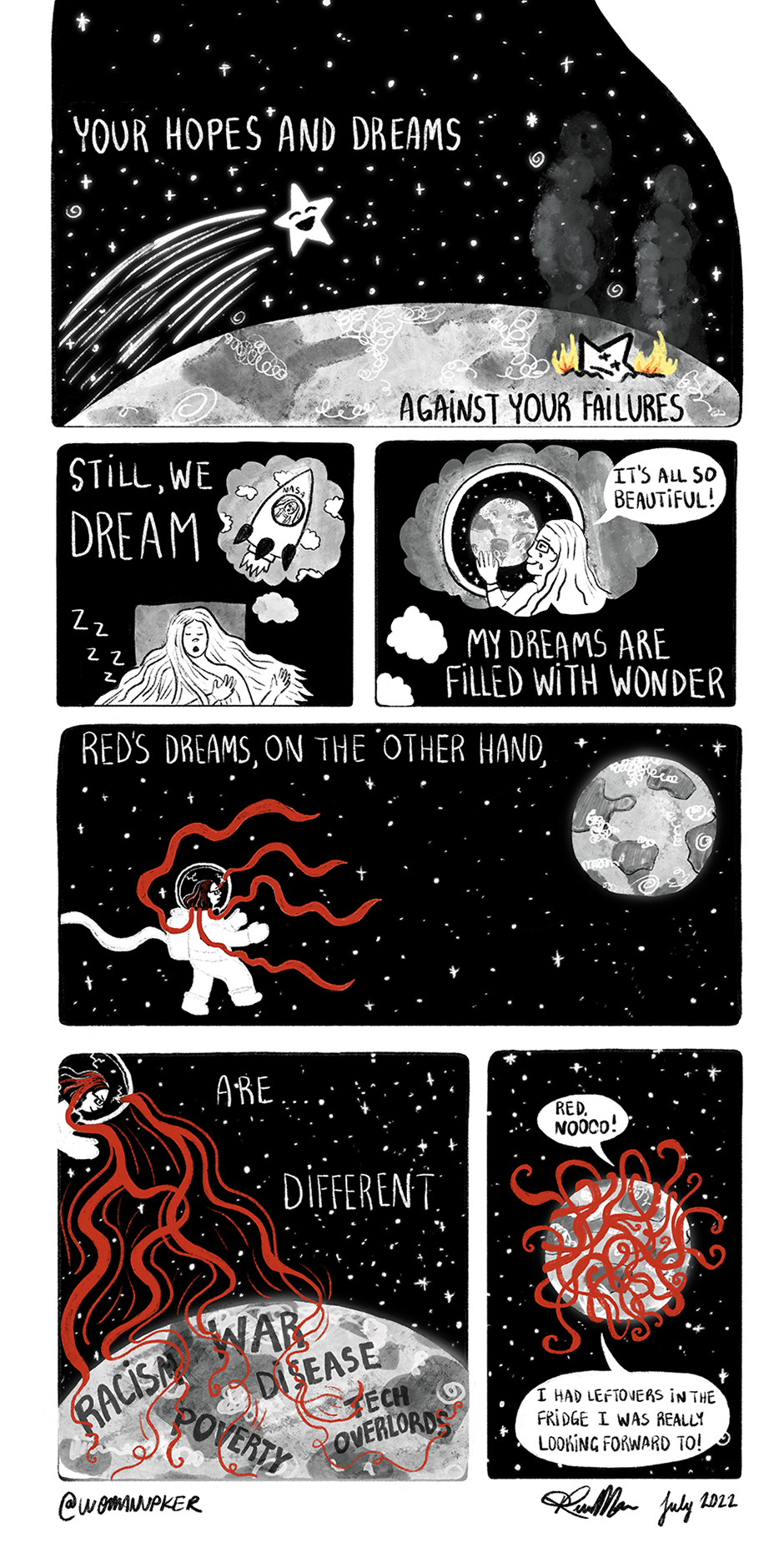 Experimented for the first time with making it a scrolling comic! So much fun, but it takes a little longer. Was thinking of doing just the dream sequences in this format, but what do you think? Thanks for reading!