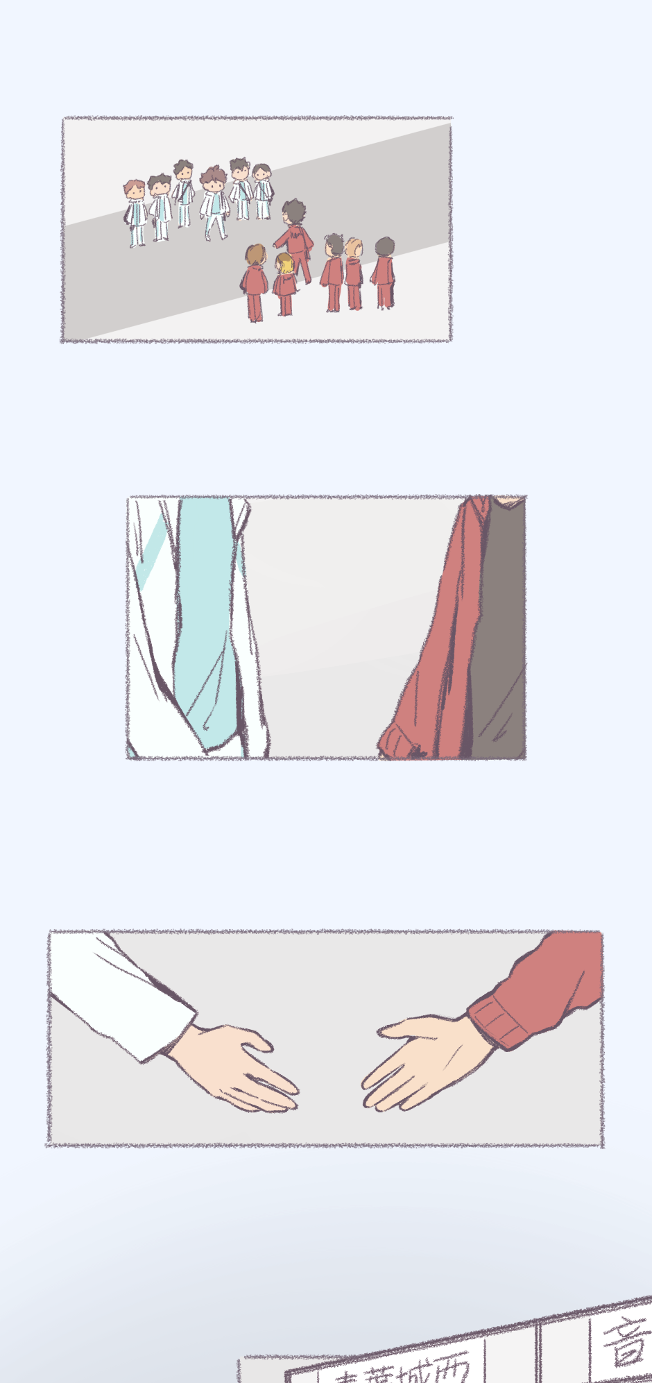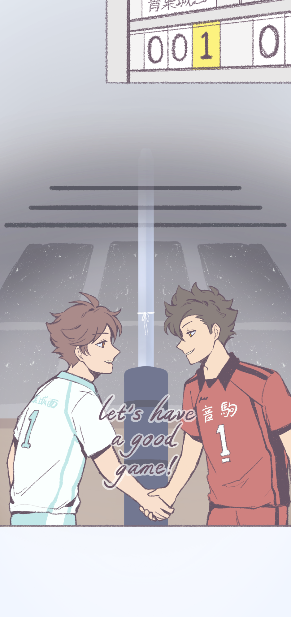 YAAAAAAAAAAAAAAY ANOTHER EPISODE!!! (/>v<)/ and Oi! Oi! Oi! The transition of the setting for the hand shake made me wanna play volleyball so bad!!!😆😆 and agreed I'm also upset that they didn't include a match between these two (T~T)