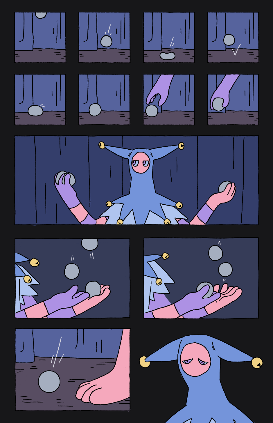 nooo hes so sad :( there better be a page later where he learns how to juggle and is really happy
