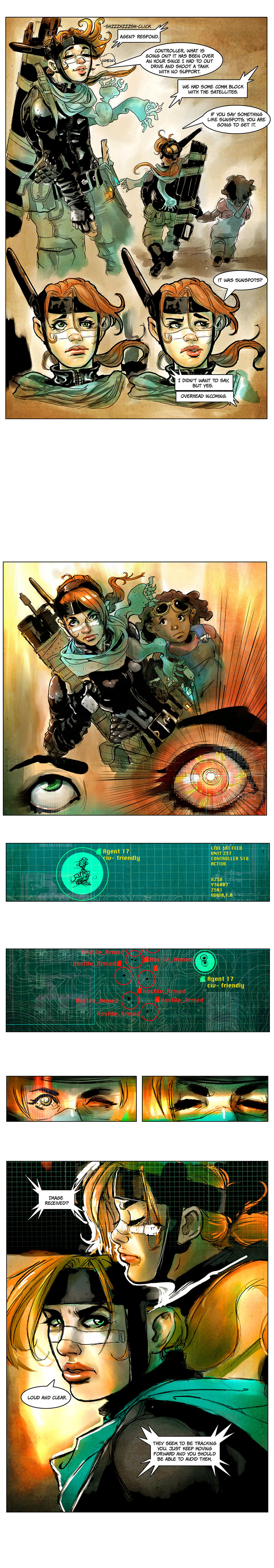 A wisecracking cybernetic agent tries to complete a vital mission of bringing a power station back online, and in turn saving an orbital elevator from collapse. Her somber partner, just a voice that maintains a watchful eye in the sky, attempts to provide assistance through high tech resources from orbit.