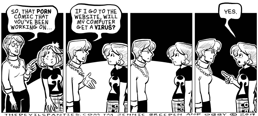 The Devil's Panties is about everything from pirates to taxes, kilt blowing to real estate and knitting to romance. Via the comic Jennie Breeden documents her haphazardly exciting adventures in life, occasionally changing names to protect the guilty.