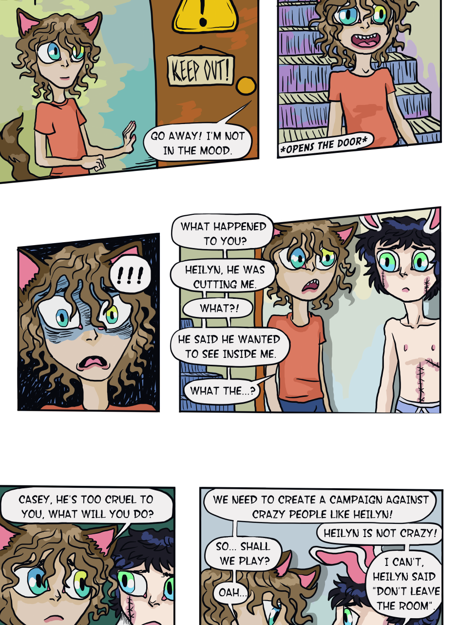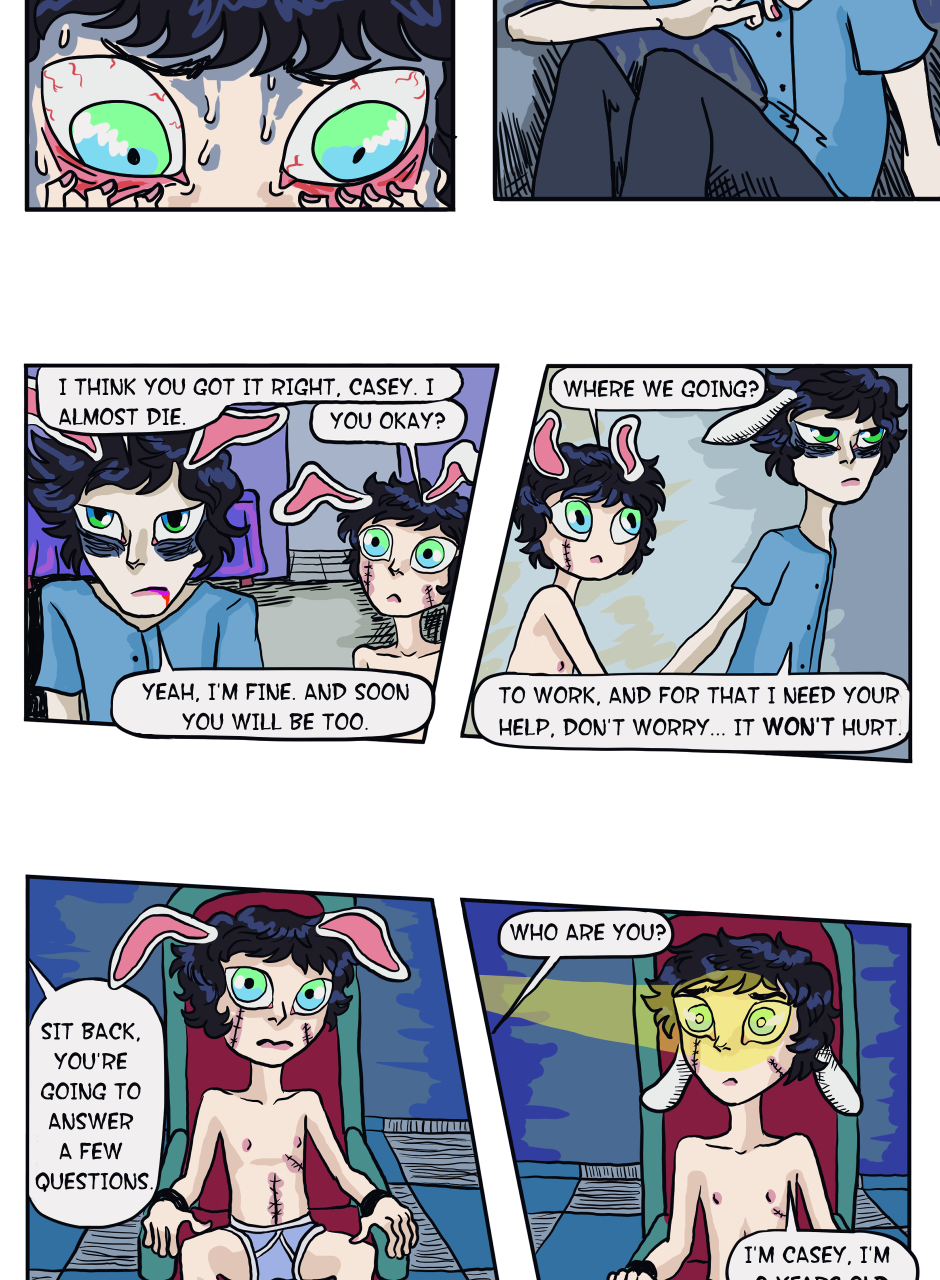The following story is an introduction to Casey's unfortunate life he didn't choose, as well as a small glimpse into the disturbing mind of the mad scientist, Heilyn. Then there is the unexpected visit of the scumbag and pervert Nikita. And last but not least, the peculiar relationship between these two childhood friends, who had hard lives and decided to run away together and manage on their own.