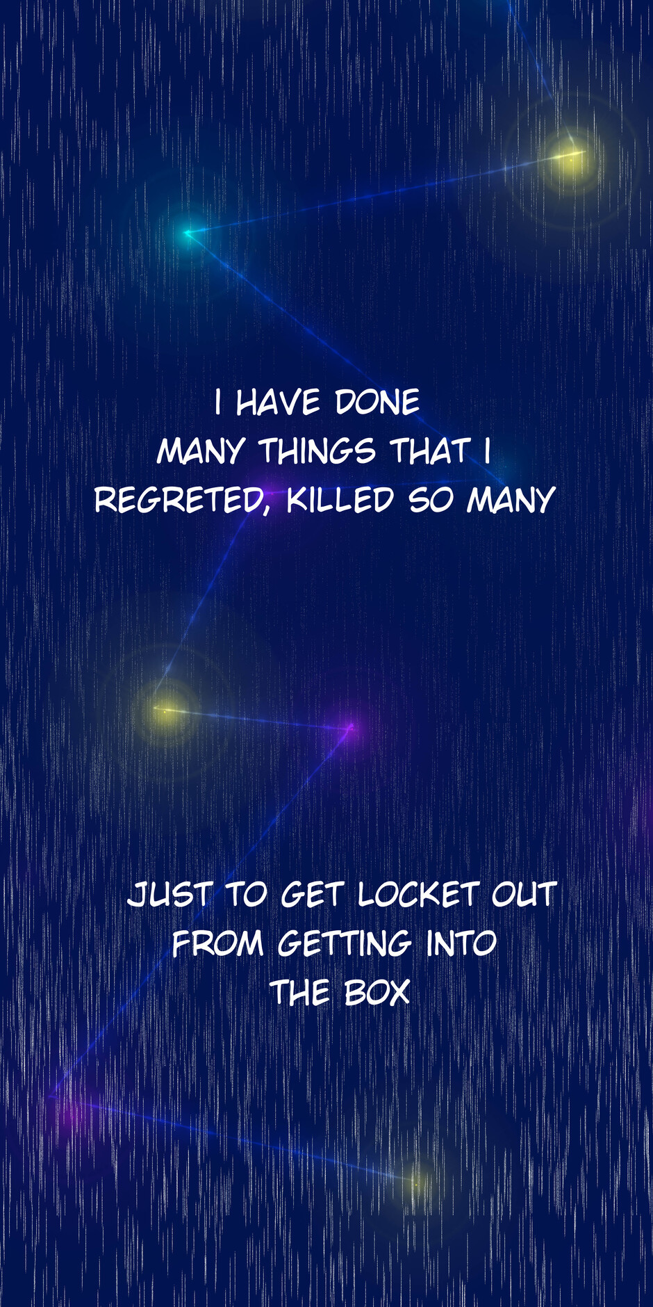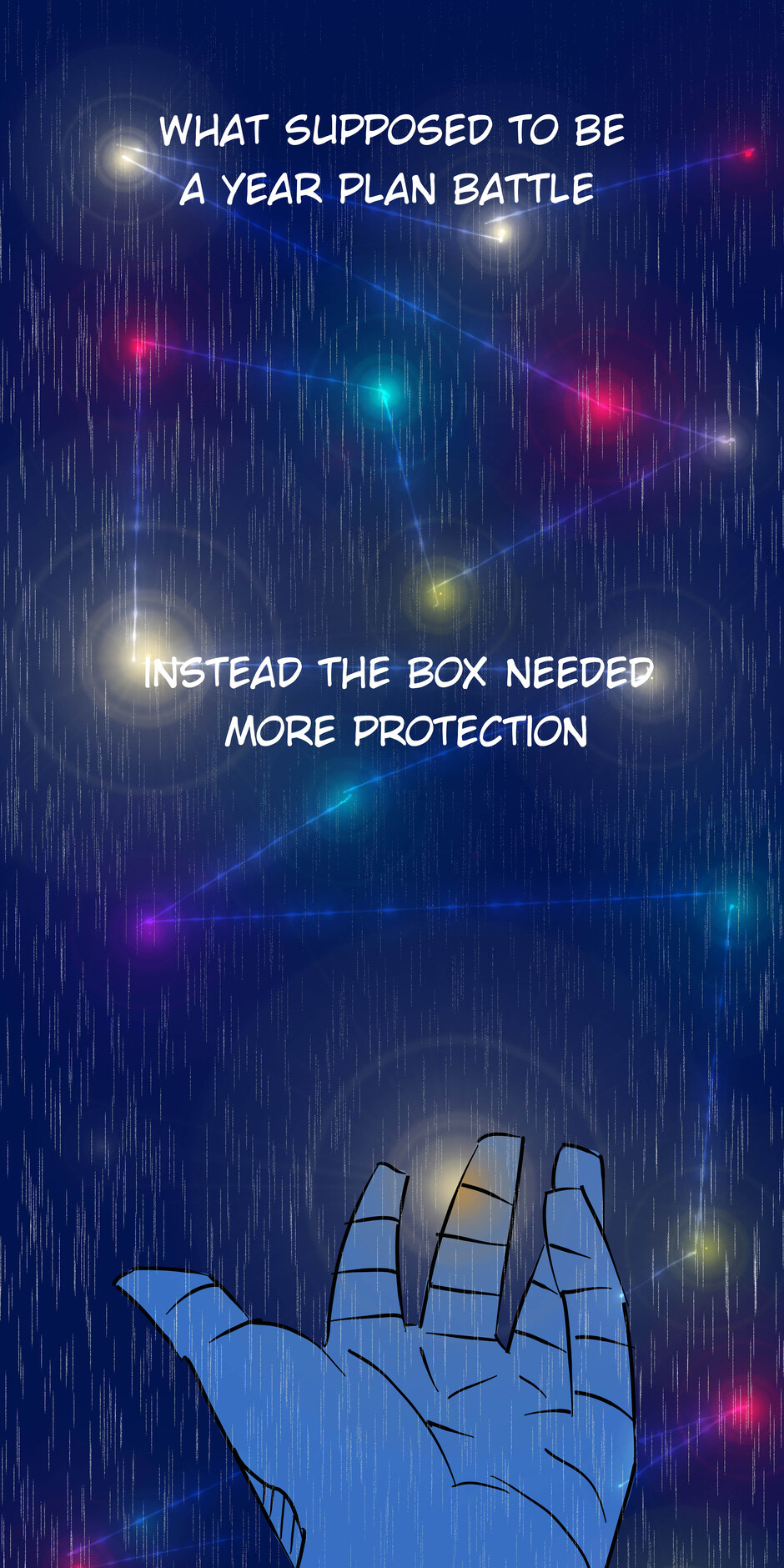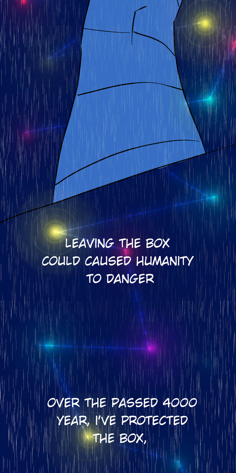 I had to place humanity in a box in order to prevent extinction. and for 4000 years i've been guarding the box. suddenly the box gates has opened and now its finally time for me to retire and sleep, but of course there's an unknown evil planning to destroy the box...and as its only guardian...i have to save the box sigh can't catch a break.