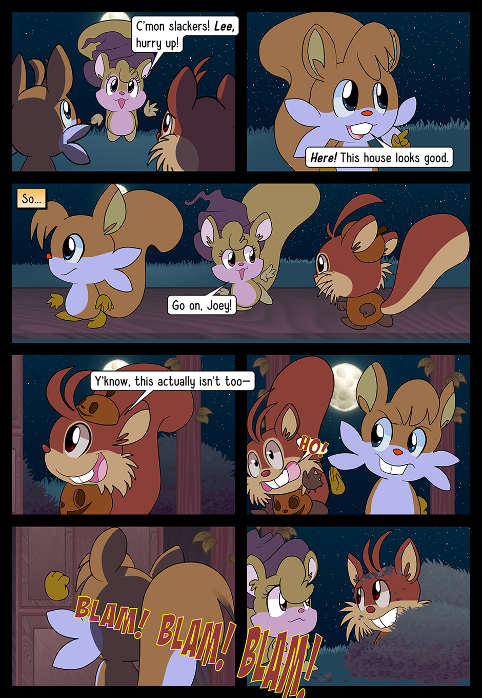 Welcome to Acorn Joey: Trick-or-Treat. The tale is that of a bright, young spark of a squirrel named Acorn Joey—oh so deathly afraid of Hallowe'en, whilst so keen to prove himself his lady love. Will he face up to his fears? Will he overcome his nightmares? Or will he cry again, like last year? There is but one way to find out…