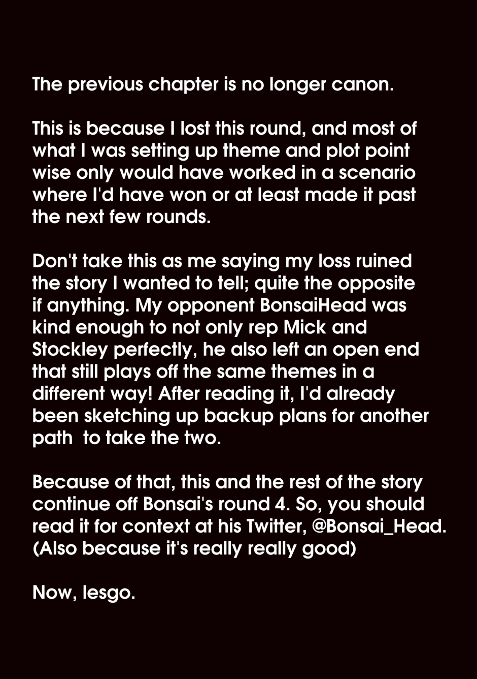 Last round may have ended in a loss, but it certainly isn't over!