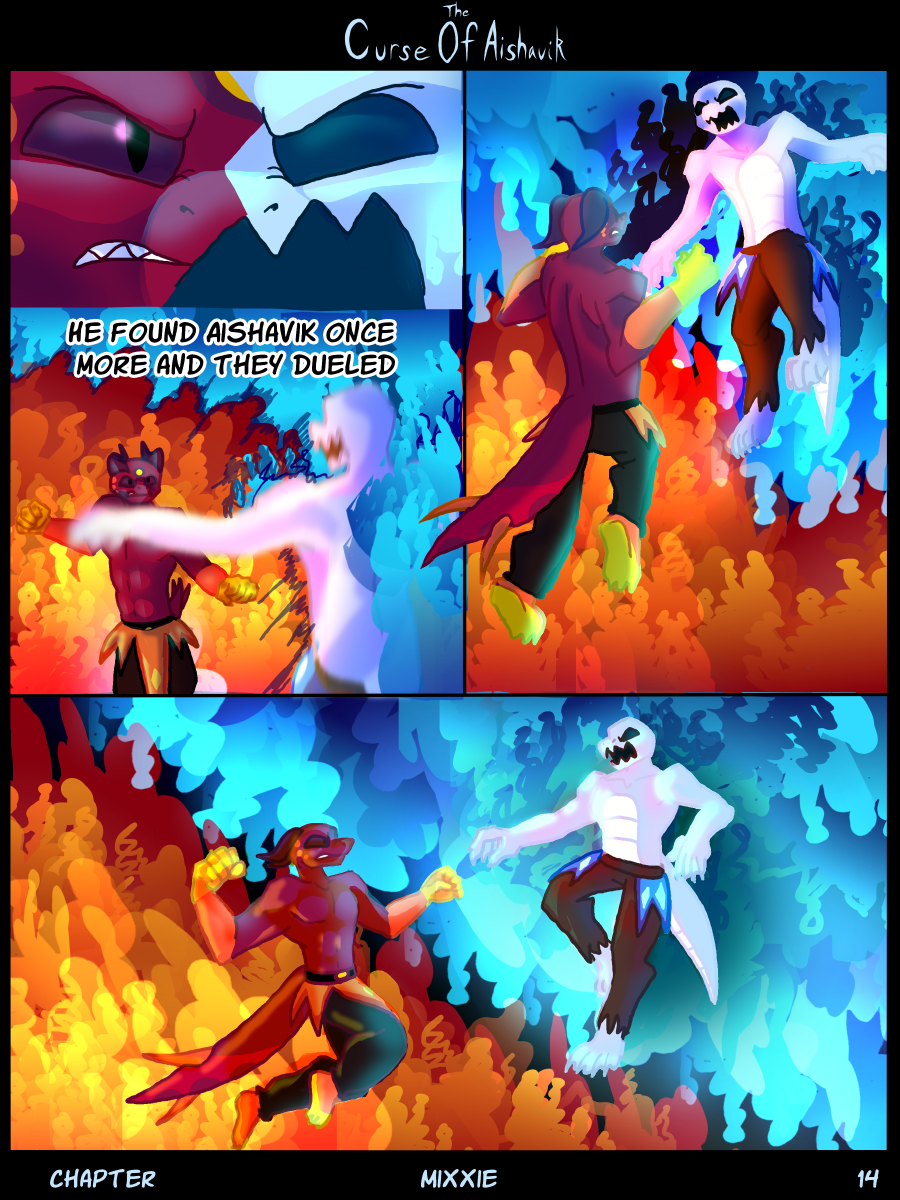 CoA is not intended for all audiences or ages. CoA contains violence, blood, gore, and much more. Some pages will be censored as necessary to my best ability, where the uncut pages can be viewed on https://mixxiemixx.wixsite.com/thecurseofaishavik