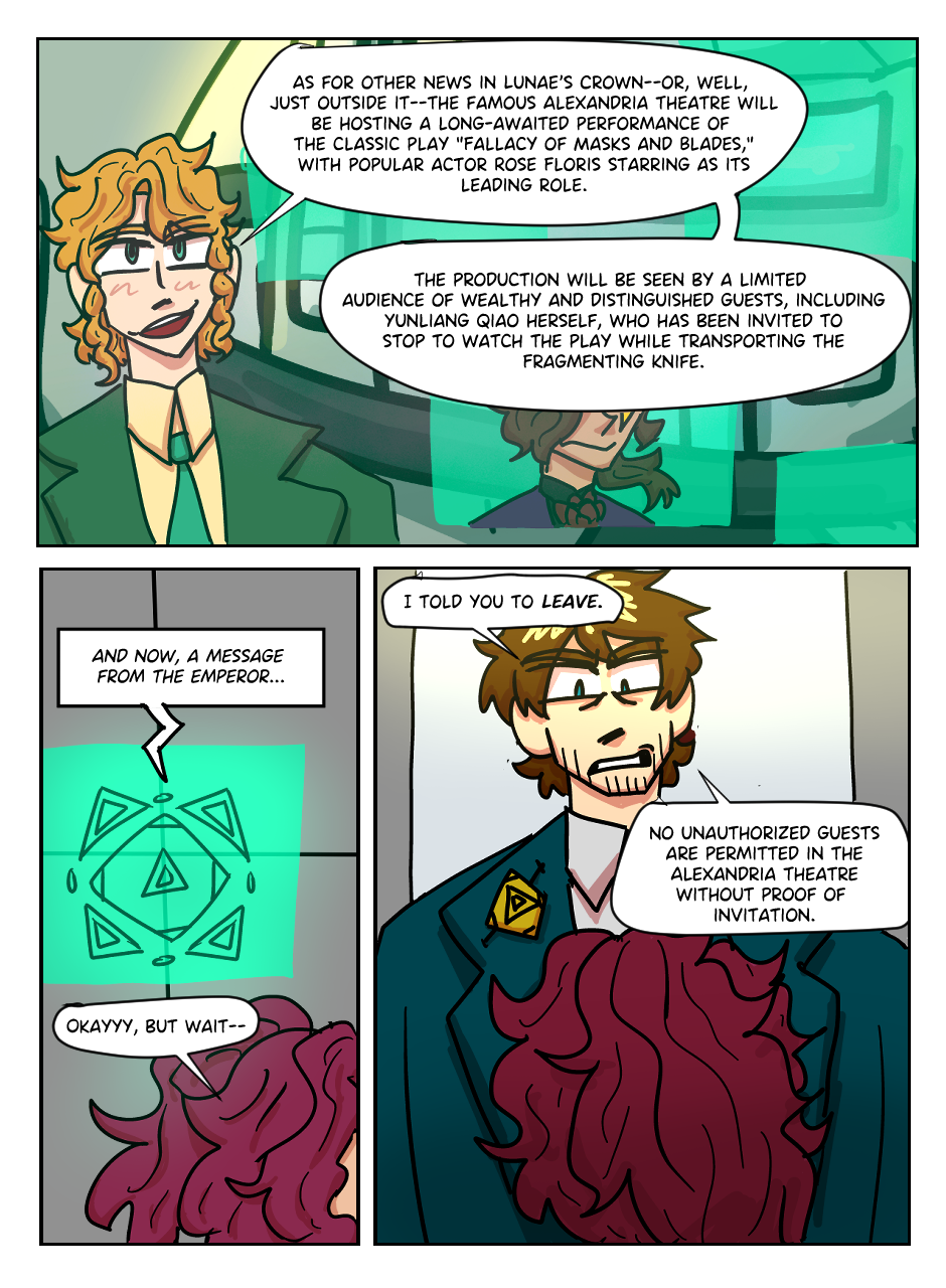 Trapped in the theater, Cata, a scientist on the run from himself, and an unlikely group of strangers are forced to cooperate and work together to uncover the truth and unmask the thief--which is easier said than done when everyone there has secrets of their own.
