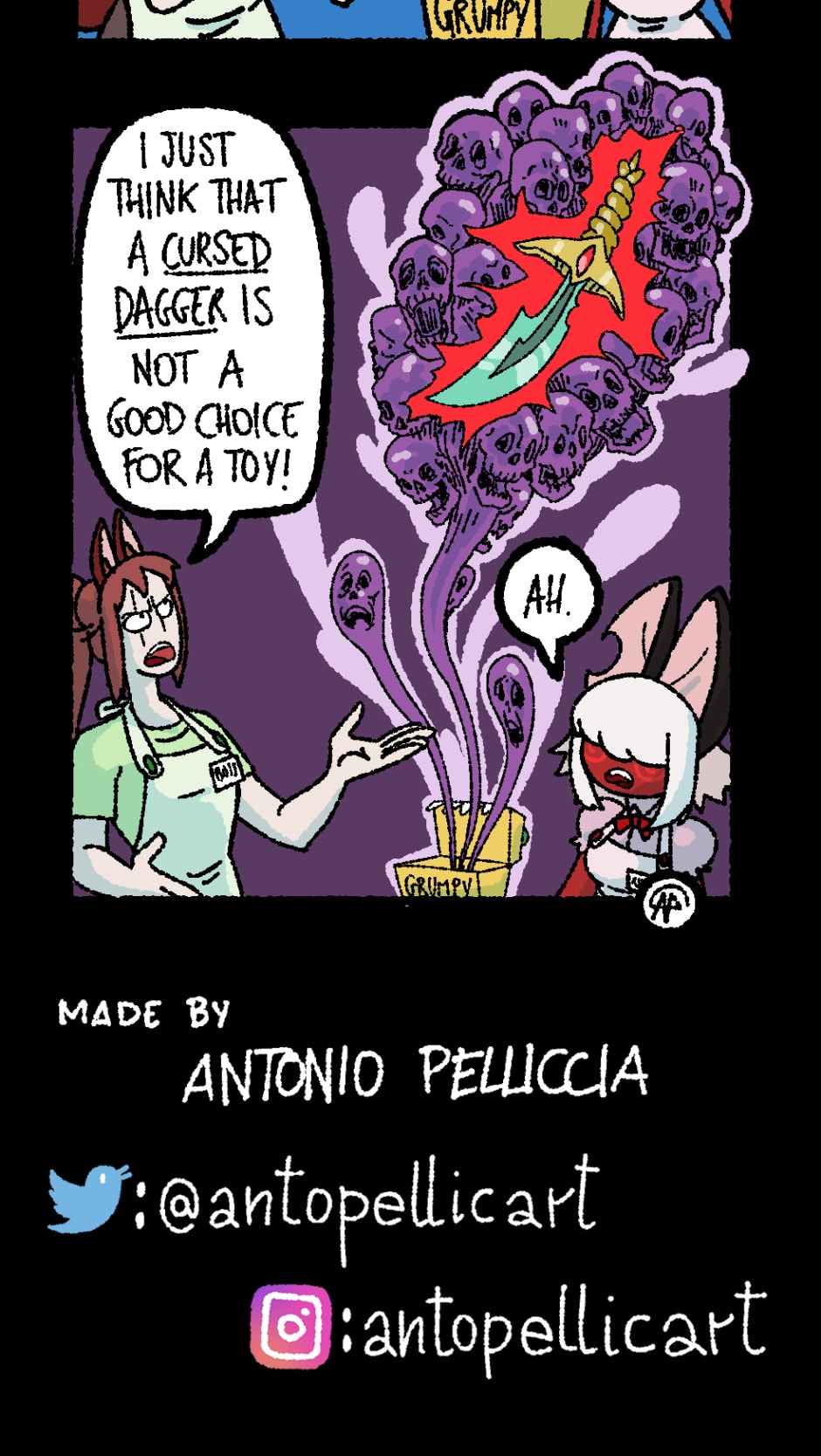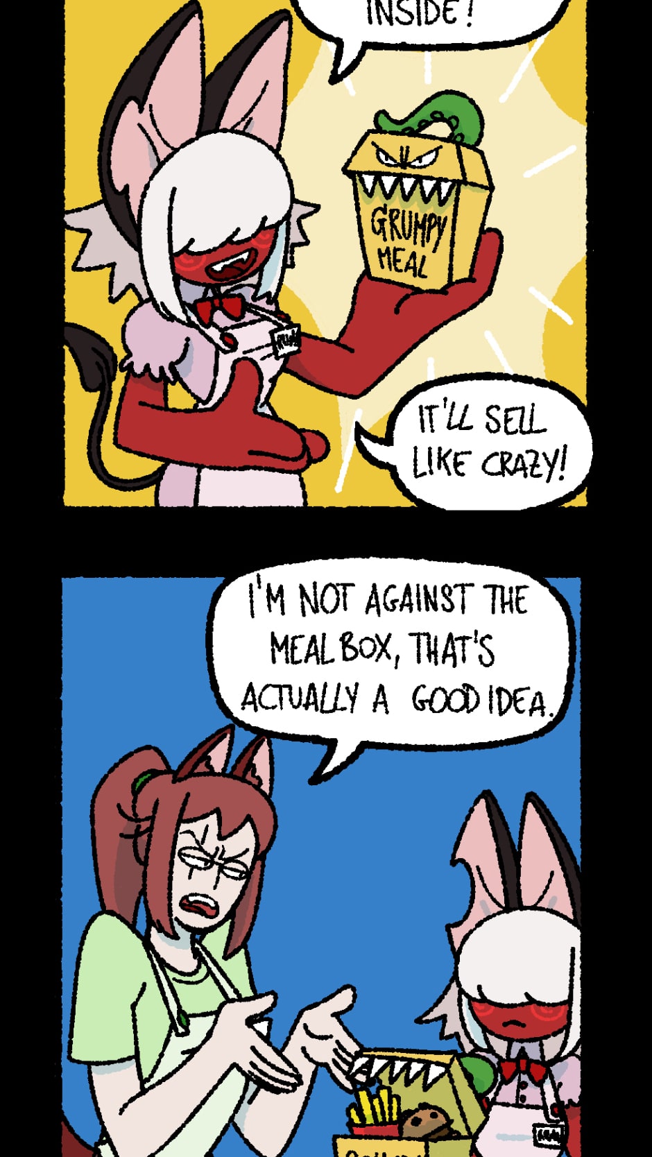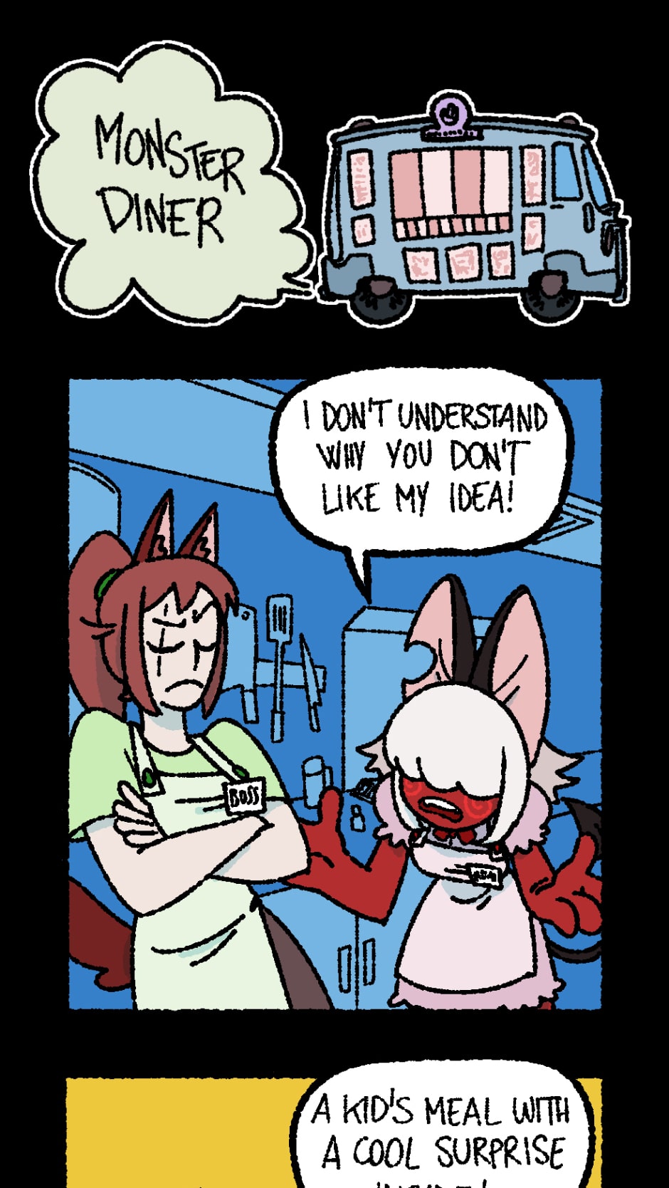 What if a zombie wants a good burger instead of the usual brains? Are vampires tired of drinking blood, and could use a nice coffee after an all nighter? Do eldritch horrors from out of reality want fries with their chicken nuggets? Go to the Monster Diner and find out! The Boss, Runa and Ed are sure to satisfy every costumers... or make a mess trying.