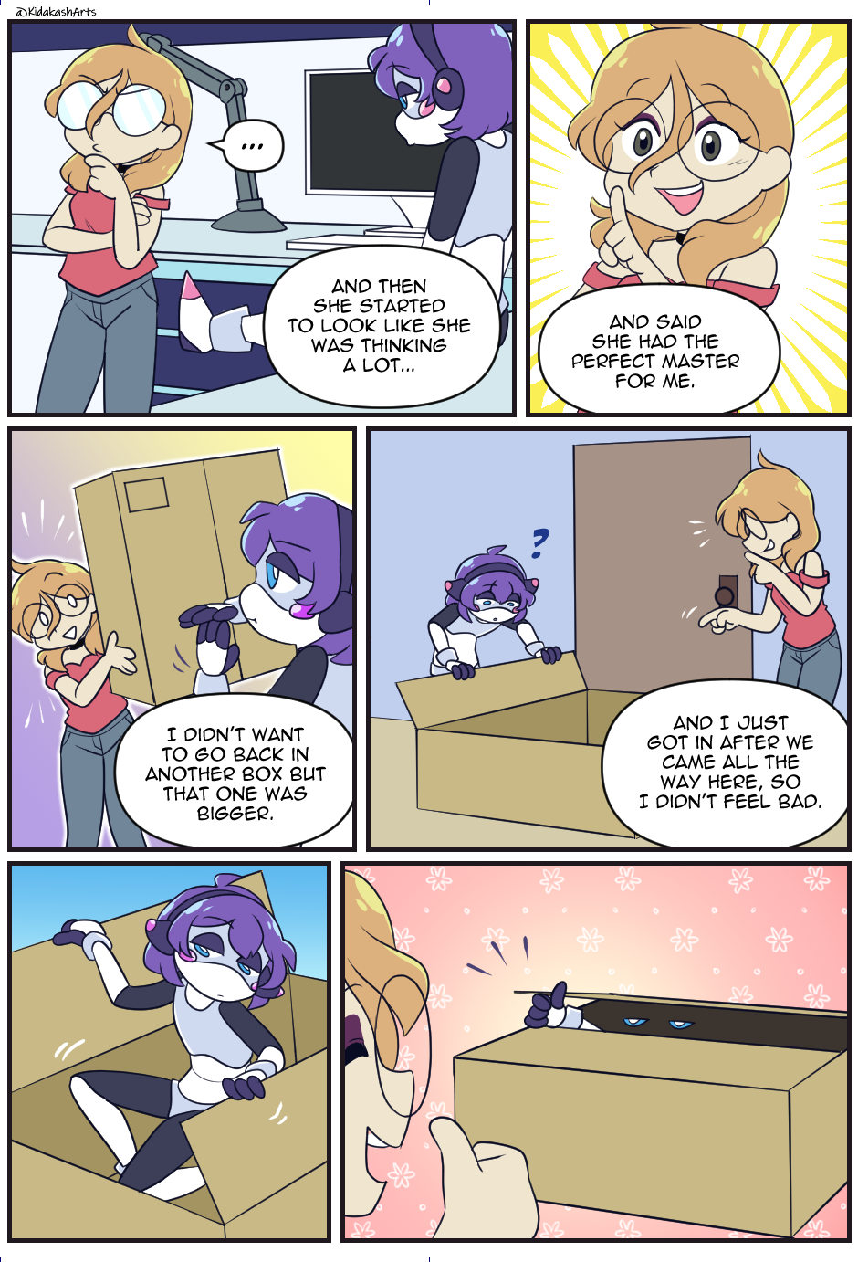 Roxy is a lazy girl who doesn't go out much. One day, a big box arrives at her doorstep, which contains a very sentient (and completely dumb) robot girl inside!